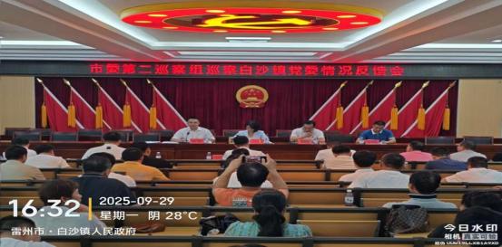 2025年9月29日16:00,市委第二巡察组巡察白沙镇党委情况反馈会在镇办公大楼二楼大会议室召开。会议传达了巡察反馈意见,明确了整改要求与方向,为白沙镇党委扎实推进巡察整改“后半篇文章”奠定了坚实基础。镇领导班子成员、中层及以上干部、各村党(总)支部书记,以及镇纪委、组织、财政、农业农村等重点部门全体人员参加会议。