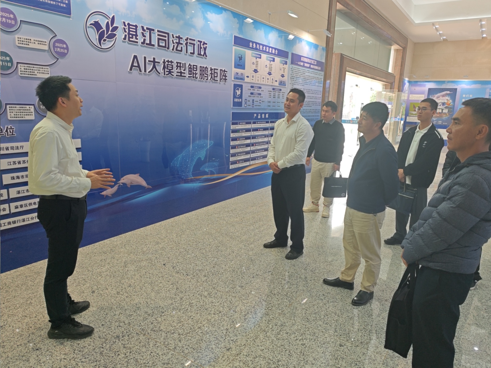 在观摩学习环节,白沙镇张进书记一行通过现场讲解、功能演示和机房参观,深入了解“鲲鹏矩阵”AI系统的研发历程与实际应用成效。罗东玲书记介绍了司法局联合科技企业打造“亲民、高效、可推广”政务AI助手的实践经验,强调要以“为我所用,无限接近”的理念推动智能办公全覆盖。张进书记表示此次学习启发深刻,将积极推动AI技术在乡镇治理中的落地应用。