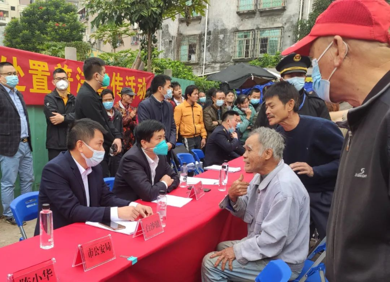 为有效遏制各类违法建设行为,加大违法建设查处力度,增强全民参与控违的意识,12月7日,雷州市人大常委会牵头组织雷州市司法局、市公安局、市自然资源局、市城综局、市住建局和白沙镇有关人员和部分全国、省、市人大代表在白沙镇开展违法建筑(构筑)物处置普法宣传活动。市人大常委会主任欧超才到场指导了活动。