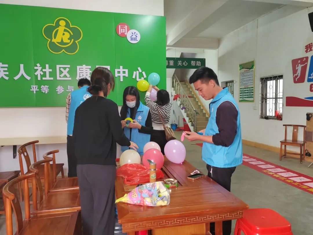活动开始前,镇中社区服务点和锦盘村服务点社工提前到康园中心协助布置会场,有的社工用毛巾擦拭桌椅的灰尘并摆放整齐,有的社工在吹气球来装饰墙壁,有的社工在粘贴活动横幅标语挂上去,大家分工明确,各尽其责,努力塑造着浓厚的节日气氛,让群众感受到社工带来的温暖,从而拉近群众和社工的距离,让社工服务理念进一步融入群众中。