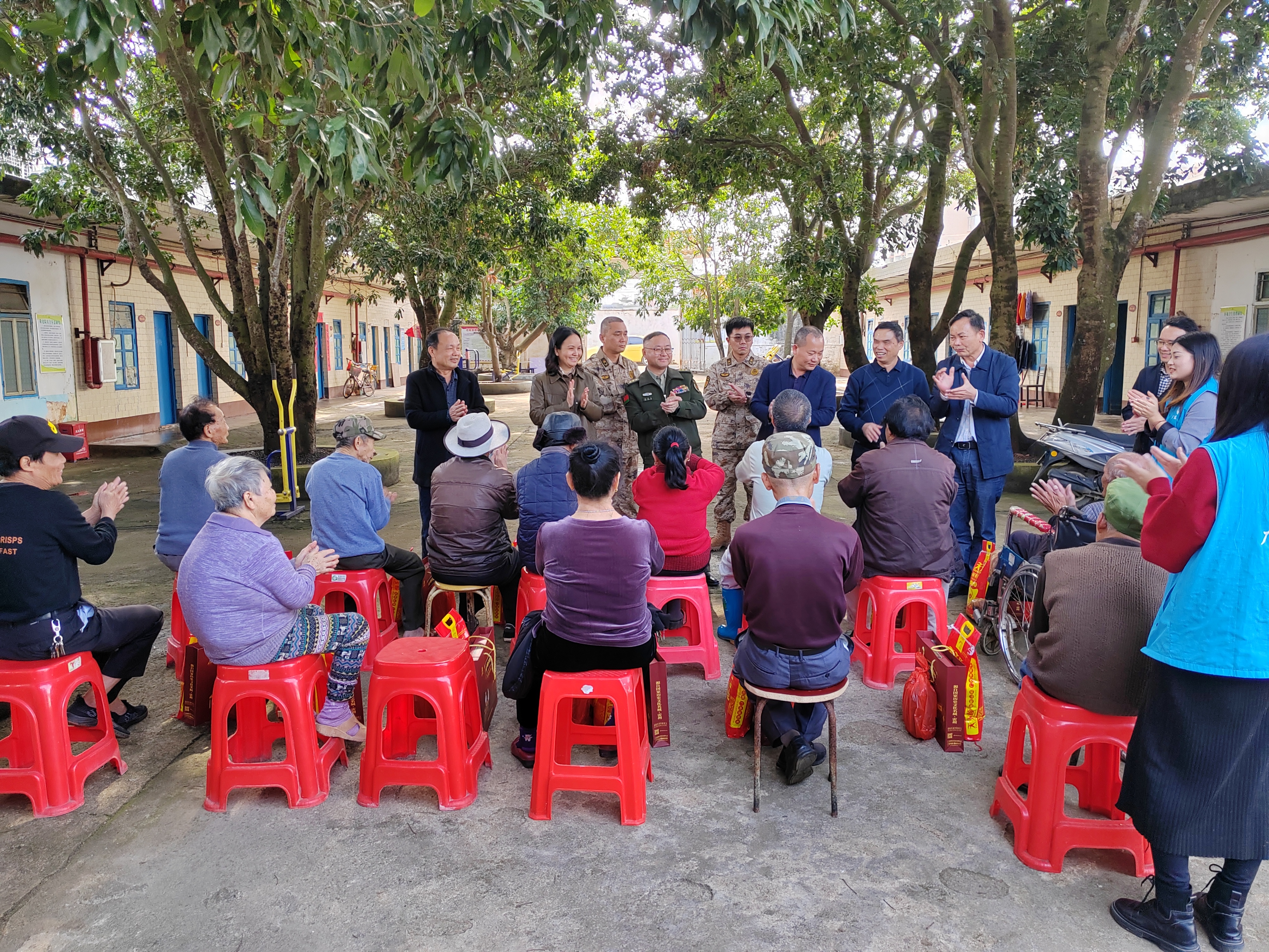 岁终年末,新春将至。为传承中华民族尊老、敬老、爱老、助老的传统美德,提升老人们的幸福感和获得感,2024年2月1日上午,市人大、市农业农村局、市武装部、市民政局和纪家镇党委镇政府联合组织到纪家镇敬老院开展春节慰问活动。人大常委会副主任周行章、纪家镇党委书记陈冠锋等领导给敬老院特困集中供养人员发放了慰问金和慰问品,给他们送上美好的新春祝福和问候。纪家镇副镇长兼社工站站长邓妃高、纪家镇公共服务办公室主任兼社工站常务副站长杨广权、副站长吴木花和敬老院院长谢元卿及陈娣等7名社工陪同慰问活动。