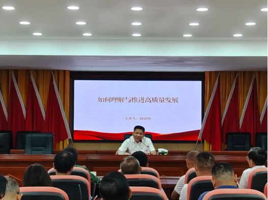 10月18日,雷州市政协主席何培烈以《如何理解和推进高质量发展》为题,为雷城街道办全体党员干部讲授专题党课。