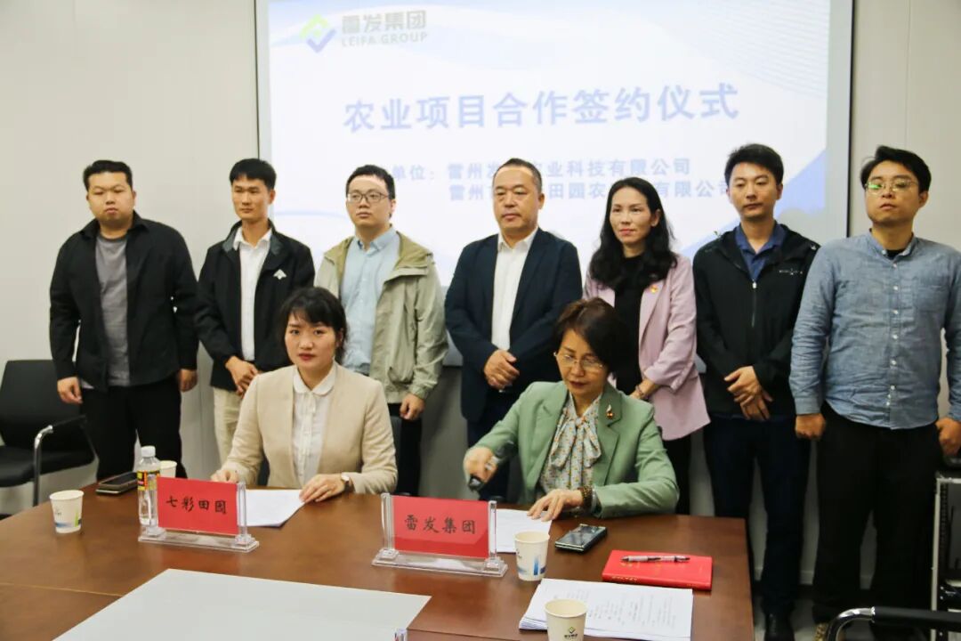 雷州发展投资控股集团有限公司财务部、乡村振兴部相关负责人和七彩田园农产品有限公司相关负责人及中华保险代表参加了签约仪式。