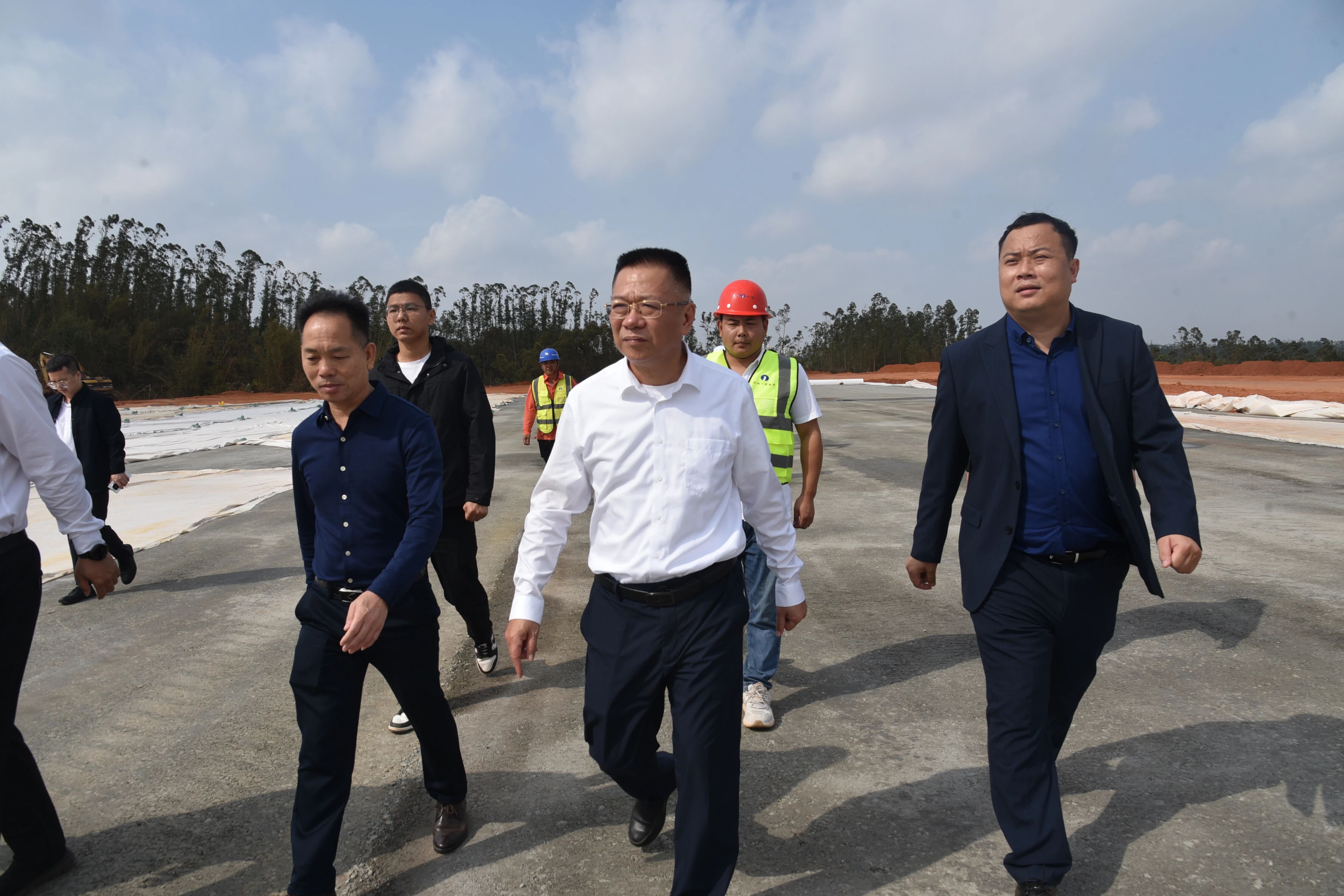 最后,吴松江一行前往湛江雷州通用航空基地建设项目现场,实地调研重点项目建设进展情况,检查项目施工安全工作,听取项目负责人关于工程进度和安全管理等方面汇报。吴松江强调,要牢固树立安全发展理念,统筹发展与安全,抓实抓细安全生产各项工作,全力以赴推进重大项目建设提速增效。