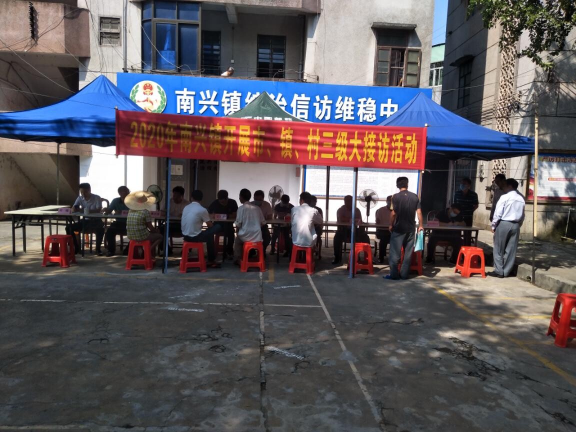 为确保全国两会期间不出现赴省进京上访事件,根据雷州市信访维稳工作会议精神,不折不扣落实信访维稳工作任务,努力实现“五个坚决防止”和“六个不发生”的工作目标,为全国两会胜利召开营造良好的社会环境。我镇于2020年5月19日上午开展了2020年南兴镇市、镇、村三级大接访活动,参加接访活动的有:市委常委、组织部部长许阮锋,市人大常委会副主任颜坚,市委党校常务副校长莫昌益,工商银行雷州分行副行长丁幼平,雷州市公交总站办公室主任何晖,以及南兴镇党委书记唐文波,南兴镇镇长陈锡广。