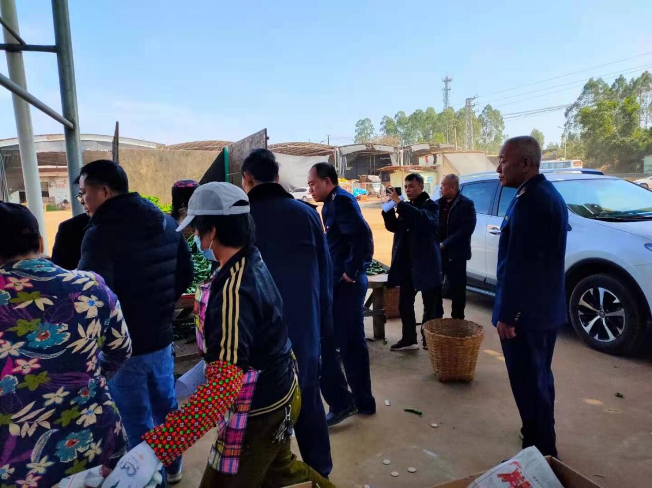 为保障我镇农民合法权益,保障生产者、经营者的合法权益,根据国家有关法律法规和省委、省政府,湛江市委、市政府,雷州市委、市政府的有关要求,我镇综合执法大队于2020年12月31日在南兴镇北运果菜开展市场监管行动,严格查处无照经营、打击欺行霸市强买强卖伤农坑农等违法行为。