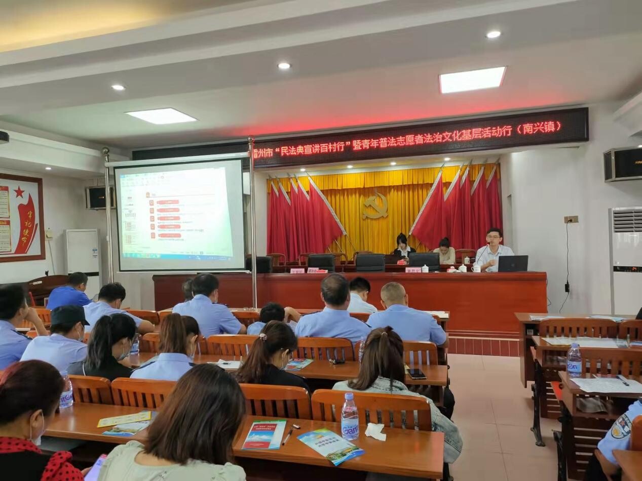 广东尚宁律师事务所的蔡治学律师通过分析解读信访条例,让现场参会的市镇村干部了解到了信访和举报的区别、信访的合法途径和主体、信访和违法上访的相关法律法规,有效提高了南兴镇信访维稳工作的开展;蔡治学律师还为现场参会的市镇村干部详细讲解了最近比较热门的《民法典》,阐述了编纂民法典的重大意义、民法典的主要内容,还着重戒毒了比较贴合日常工作、日常生活相关的民法典内容,切实强化各村(社区)干部、执法队员、驻村辅警法治观念和法治意识。