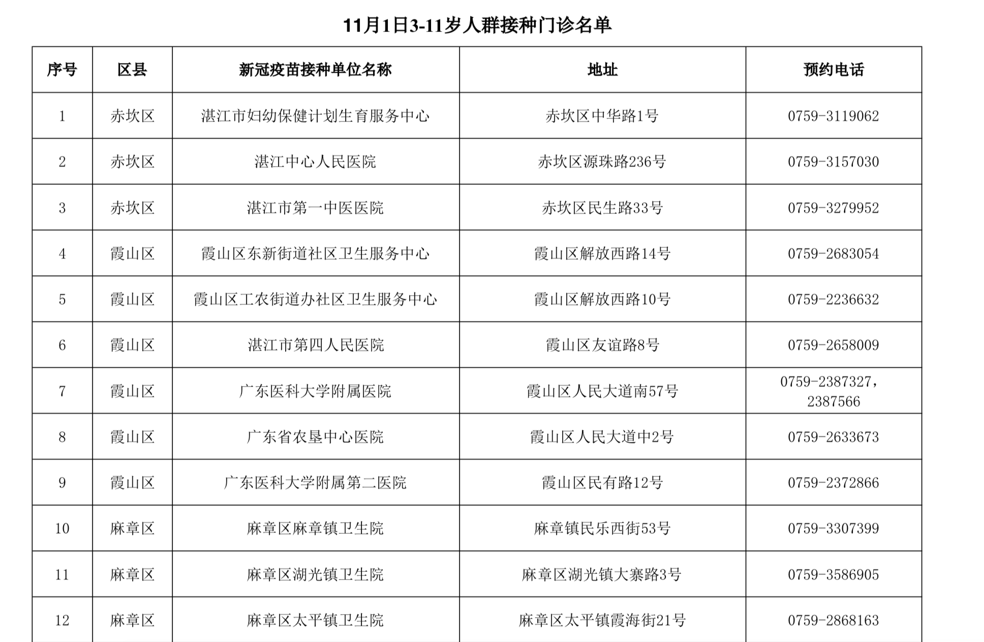 11月1日起,湛江3-11周岁儿童新冠疫苗开打,34个接种点公布