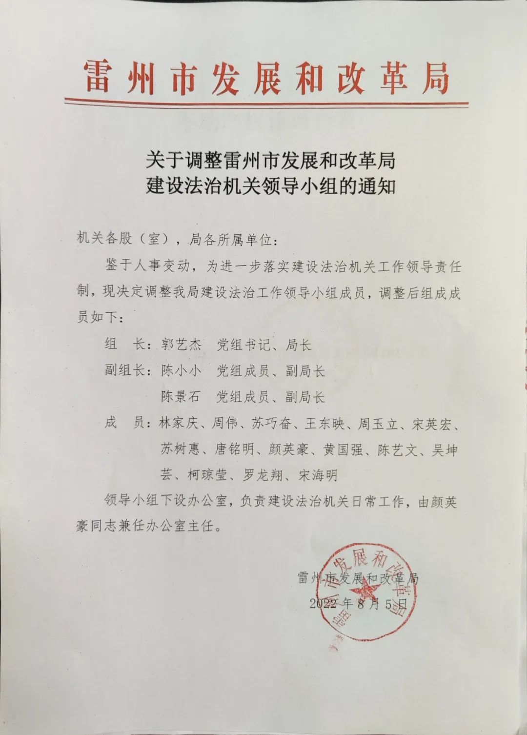 2020年以来,雷州市发展和改革局在雷州市委、市政府的正确领导下,以习近平新时代中国特色社会主义思想为指导,全面贯彻落实党的二十大精神,深入贯彻落实全面依法治国新要求,立足发改职能,紧密结合工作实际,开展形式多样、 内容丰富的法治学习、宣传活动,向公民、企业普及相关法律知识,积极应对普法宣传新形势,进一步增强了全局干部职工依法行政意识,为优化发改工作、建设法治政府、推动雷州经济跨越式高质量发展提供强有力保障。“八五”普法期间,我局获得“湛江市脱贫攻坚先进集体”、“安全生产责任制和消防工作考核优秀单位”、“广东省2022年度价格认定工作质量分组评查活动表扬单位”等荣誉。
