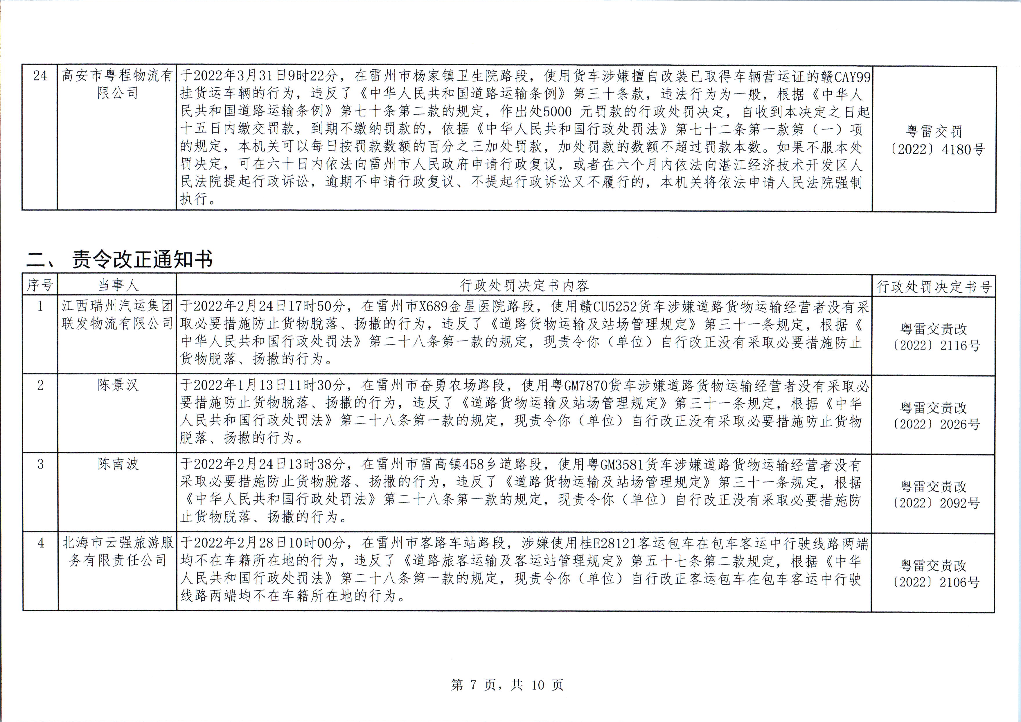 雷州市交通运输局关于送达交通运输行政执法案件法律文书的公告