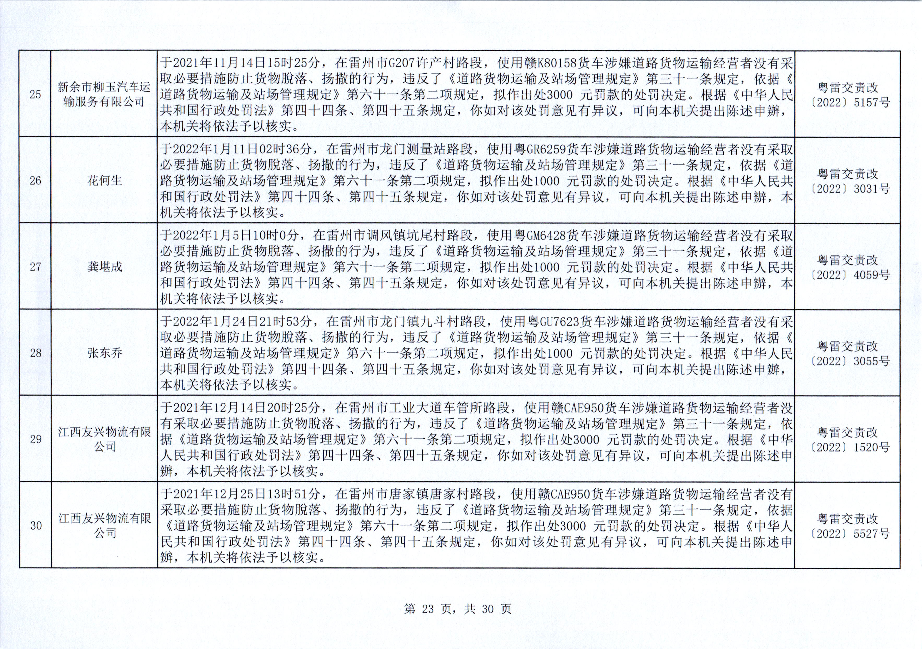 雷州市交通运输局关于送达交通运输行政执法案件法律文书的公告