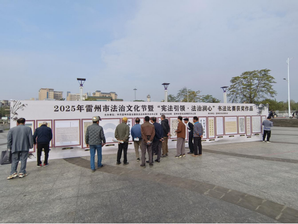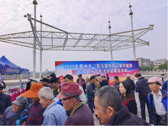 12月4日上午9点30分,2025年雷州市“宪法宣传周”集中宣传暨法治文化节书法作品展览活动在雷湖文化广场顺利举行。本次活动由市委依法治市办、市司法局、市普法办牵头主办,市委宣传部、市委政法委、市委网信办、市法院、市检察院、市公安局、市教育局、市发改局、市卫健局、市退役军人事务局、市应急管理局、市统计局、国家统计局雷州调查队、市总工会、人大常委会法工委、团市委、市妇联等单位联合协办,通过前期氛围营造与线下集中互动相结合的方式,让宪法精神真正走进群众生活。