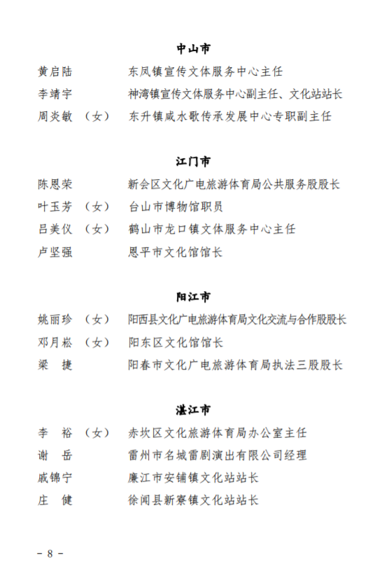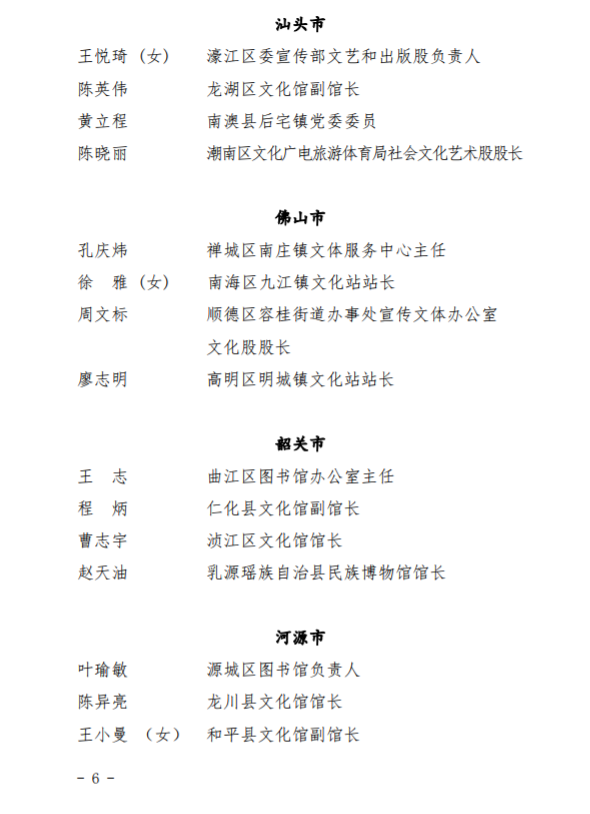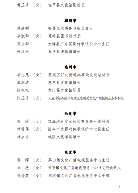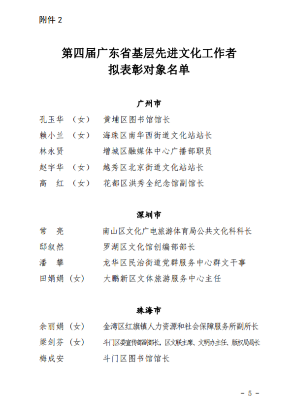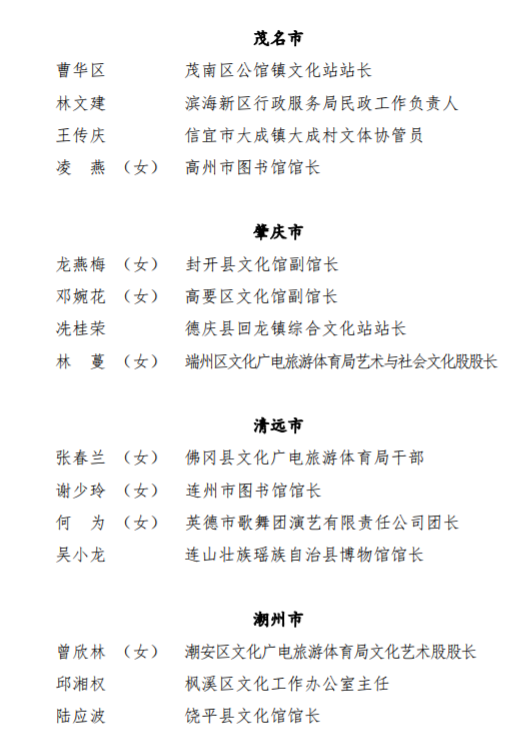 第四届广东省基层文化工作先进单位、先进工作者拟表彰对象名单↓↓↓↓