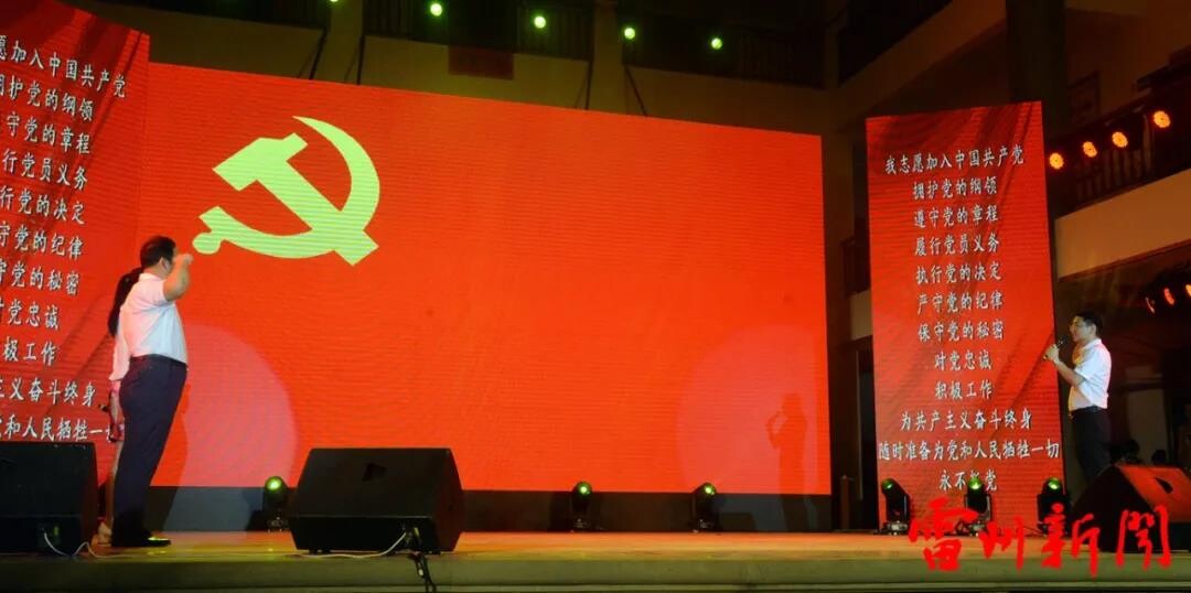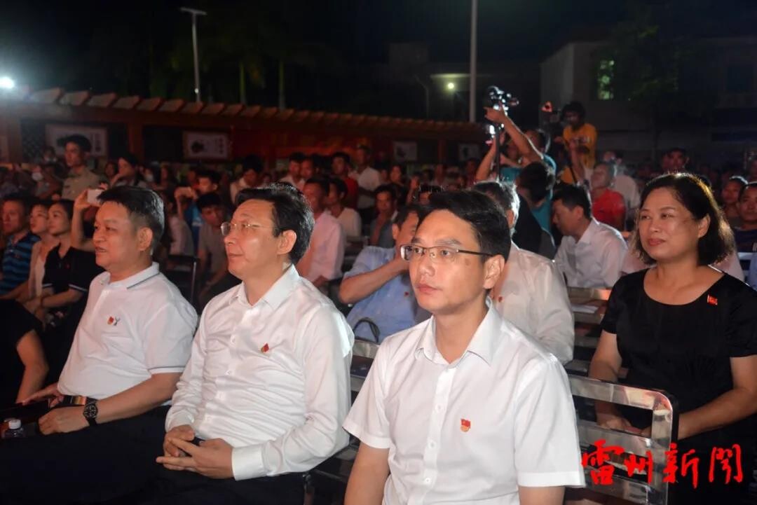 展演期间,雷州市纪委常委、市委巡察办主任、中国书法家协会会员、广东省书法家协会理事莫颂军等现场挥毫,并将书法作品赠送给观演群众;在场的全体党员在中共雷州市委副书记、市长黄廉东领誓下重温入党誓词。展演的最后,湛江市歌舞团独唱演员陈佳、湛江市音乐协会理事曹康表与现场全体人员齐唱《好日子》,感恩中国共产党带领广大人民群众艰苦创业、脱贫奔康,走进幸福美好的新时代。现场领导一同给群众赠送慰问品、送福送温暖。