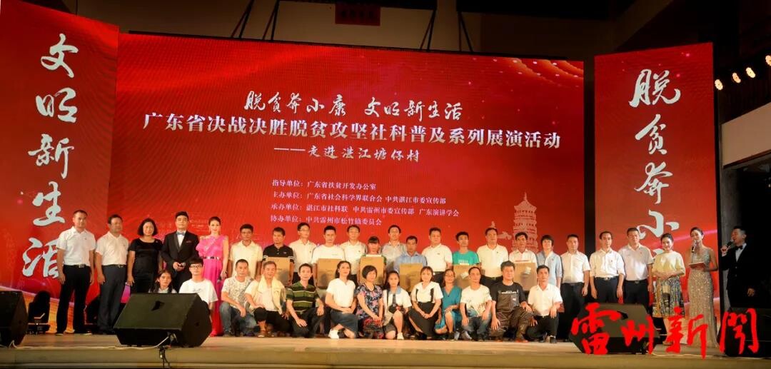脱贫奔小康,文明新生活。8月7日,由广东省扶贫开发办公室指导,广东省社会科学界联合会、中共湛江市委宣传部主办,湛江市社会科学界联合会、中共雷州市委宣传部、广东演讲学会承办的广东省决战决胜脱贫攻坚社科普及系列展演活动在雷州市松竹镇塘仔村举行。