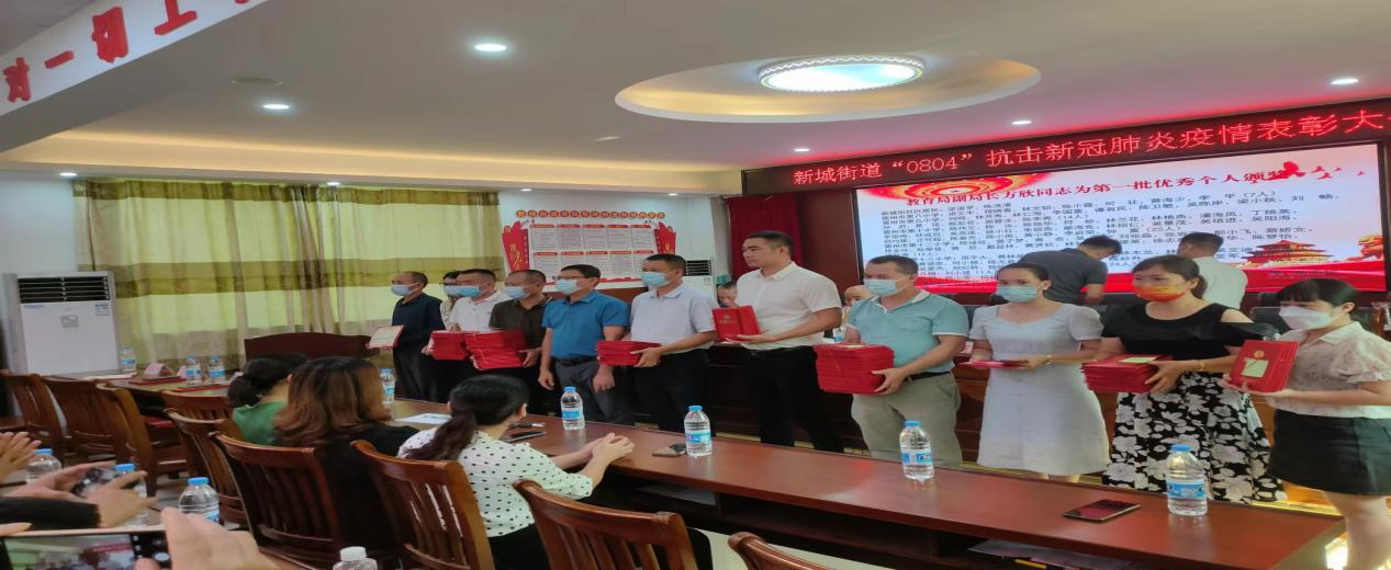 此次表彰活动,给新城街道170名参加过至少三次全民核酸检测等活动的教师、居民志愿者以及8个先进单位颁发了荣誉证书。