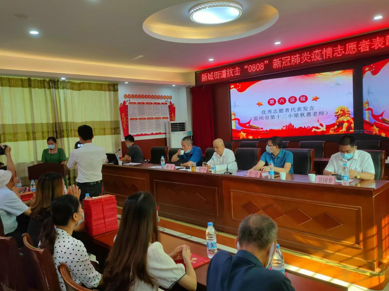 在“0804”雷州本土疫情的防控工作中,新城街道广大教师志愿者及居民志愿者从讲台或家庭走向抗疫卡口前沿,在各个抗疫岗位上诠释师者担当、社会情怀。他们或在核酸一线忙碌,或在网格点进行入户核查和宣传发动,为群众购物、配送生活必需品;或在市流调岗位开展温馨电话提醒、民生服务热线、心理服务热线等,以志愿力量助力筑牢全市群防群治的严密防线。