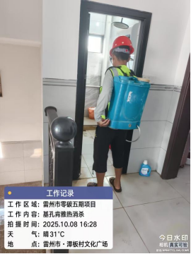 我局组织工作人员在潭板村文化广场、新时代路等区域开展了系统性的蚊虫消杀工作。同时,东岛锂电材料项目、南兴大厦等施工区域同步落实除虫害及环境清理,有效降低蚊媒滋生风险。除此之外,物业小区也同步做好各小区的消杀工作。
