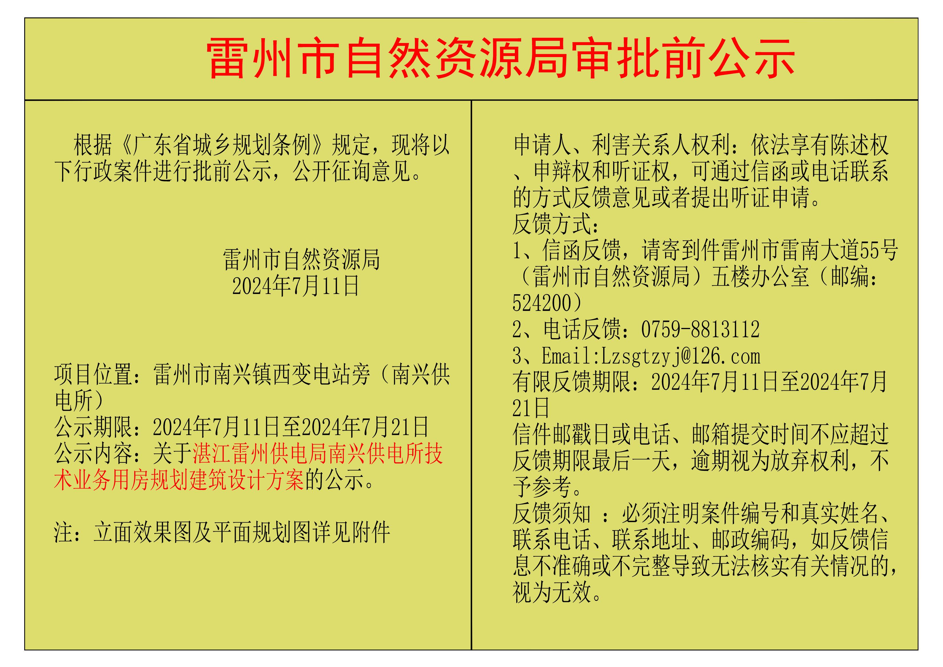 关于湛江雷州供电局南兴供电所技术业务用房规划建筑设计方案的公示