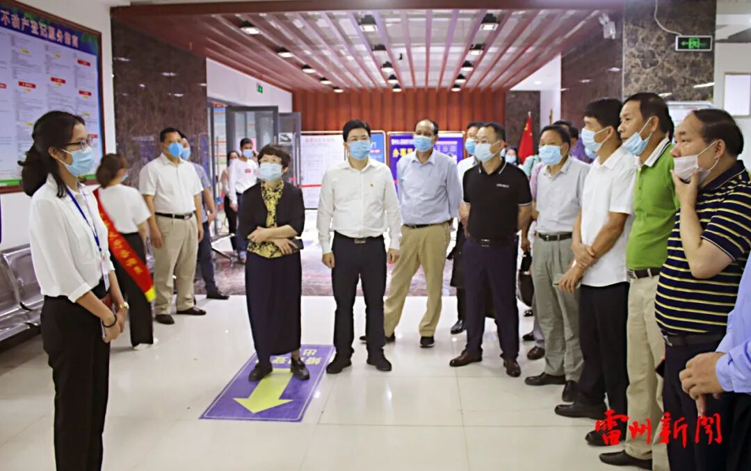 蔡玲一行深入到雷州市政务大厅视察,该中心负责人陪同并逐一介绍各个办事窗口的有关情况。