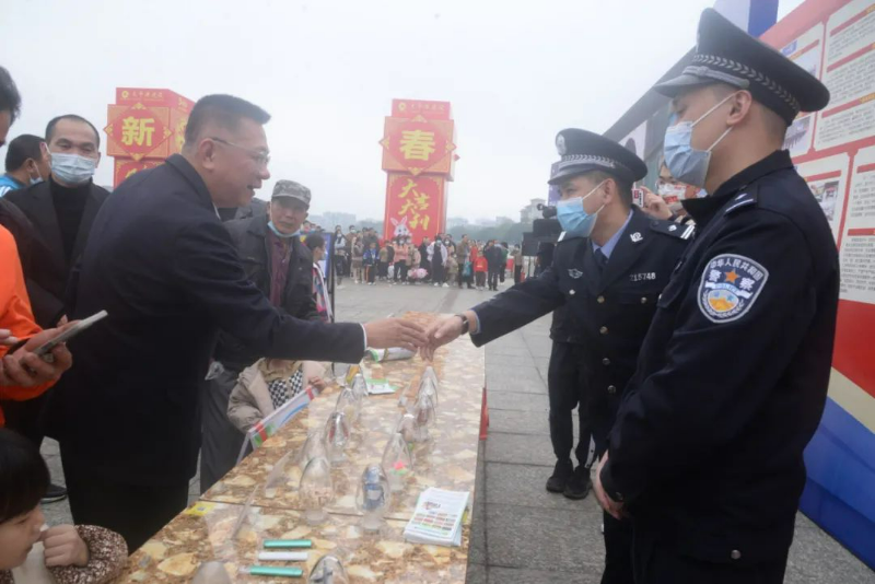 1月22日,农历大年初一,雷州市委书记吴松江率队看望慰问坚守岗位的一线工作者,感谢大家的辛勤付出,并代表市委、市政府向春节期间坚守岗位的一线民警、环卫工人以及部分单位值班人员等群体致以节日祝福和亲切问候,希望大家继续坚守岗位,让全市人民群众度过一个平安欢乐和谐的新春佳节! 当天上午,吴松江一行到雷州市外贸路口和南湖广场的交通执勤点,看望慰问坚守在岗位上的一线特警、交警及巡警,给他们送上节日的问候和祝福。吴松江说,在万家团圆的时刻,广大公安干警舍小家顾大家,默默坚守岗位辛勤的付出,为保障全市人民过上平安祥和的春节作出了贡献!他对公安干警长期以来的辛勤奉献表示衷心感谢和崇高敬意,并通过他们向全市广大公安民警致以节日的问候。他希望公安部门继续坚守岗位,发扬连续作战精神,加强巡逻值守,严格落实各项工作措施,扎实做好各项安全工作,为社会大局持续稳定作出新的更大贡献。 在市博物馆门前的广场,吴松江与坚守岗位的环卫工人一一握手问好,与他们亲切交谈。他指出,环卫工人是城市的“美容师”,每年春节期间,是家家户户除旧迎新的时刻,却也是环卫工人最劳累的时刻,环卫工人用自己的劳累换来了城市的干净整洁。吴松江表示,全社会都应该更加关爱环卫工人,更加理解和尊重环卫工人,积极配合他们的工作,共同营造洁净优美、文明和谐的城市家园。同时希望环卫工人继续发扬吃苦耐劳精神,坚持做好节日期间城市环境的保洁工作,让广大市民过一个欢乐健康的新春佳节。 春节期间,公安局部门利用外出务工人员返乡过春节的时机,连日在南湖广场开展交通安全、禁毒防毒、养老诈骗、防范网络诈骗、扫黑除恶等工作的大型警民互动宣传活动。大年初一,正值禁毒宣传活动日。吴松江在南湖广场观看了各个宣传展板和有关宣传片,向宣传民警详细了解禁毒知识,认真听取有关负责人介绍禁毒宣传工作。他指出,禁毒工作事关人民身心健康和安居乐业,事关全市经济发展和社会进步,全市各级各部门要加大宣传力度,以更强烈的担当精神履行好党和人民赋予的使命和任务。 最后,吴松江来到部分单位值班室,看望慰问各单位值班人员。“新年好!大家辛苦了!给大家拜年了!”在市委办、市政府办、市保密局等单位值班室,吴松江与值班人员亲切握手,送上节日诚挚的问候和衷心的感谢。