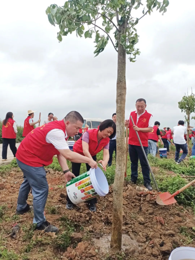 为贯彻落实习近平生态文明思想,按照绿美广东生态建设部署要求,4月22日,赤坎区与雷州市在雷州松竹、南兴两镇辖区交界路段开展乡村绿化党建共建活动,现场共种600多株新树苗。这标志着赤坎区委组织部与雷州市委组织部贯彻落实湛江市委组织部关于“乡村绿化党建共建”工作部署要求取得新进展、新成效,为雷州市跨越式、高质量发展提供更加有力的生态支撑。