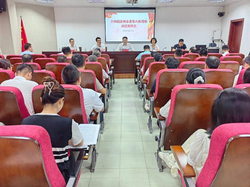 10月16日,十四届雷州市委第八轮巡察动员部署会召开。会议深入学习贯彻习近平新时代中国特色社会主义思想和党的二十届二中、三中全会精神,学习贯彻习近平总书记关于党的自我革命的重要思想、关于巡视工作的重要论述,贯彻落实二十届中央纪委四次全会、全国巡视工作会议及全省巡视巡察工作会议、湛江市委第八轮巡察动员部署会精神,对十四届雷州市委第八轮巡察工作进行动员部署。市委常委、市纪委书记、市监委主任、巡察工作领导小组组长郑育雄讲话,市委常委、组织部部长、党校校长、巡察工作领导小组副组长钟晓梅宣布十四届市委第八轮巡察组长授权任职及任务分工。