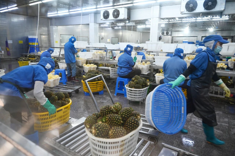 南派食品以“公司+基地+合作社+农户”的发展模式,带动菠萝合作社、龙头企业、家庭农场等新型经济主体和农户经济发展。同时,积极与中国热带农业科学院、广东省农业科学院共建菠萝技术研究中心合作,承担4项省、市科技计划项目,在提升生产原料品质的同时,不断将新理念、新技术、新模式引入到农业生产、加工、销售过程中。
