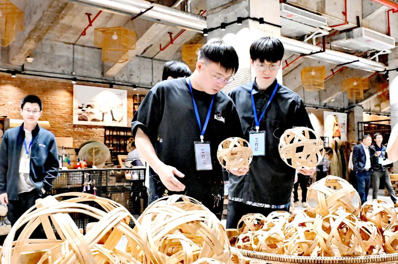 悬挂的竹编器物、造型各异的根雕、威风凛凛的醒狮道具……走进足荣村手作博物馆,浓郁的雷州文化气息扑面而来。在互动区,一位编织匠人正盘腿坐在铺着草席的工作台上,灵巧地将蒲草经纬交错,身旁散落的彩色蒲草与成品包包形成鲜明对比。据工作人员介绍,这类蒲草包需经选草、编织、定型等多道工序,熟练匠人也要数天才能完成。而在另一侧的文创展区,蒲草编织与现代设计碰撞出别样火花:蒲草编的灯饰、帽子、艺术摆件,将传统工艺注入时尚基因,助力乡村手作“破圈”出彩。