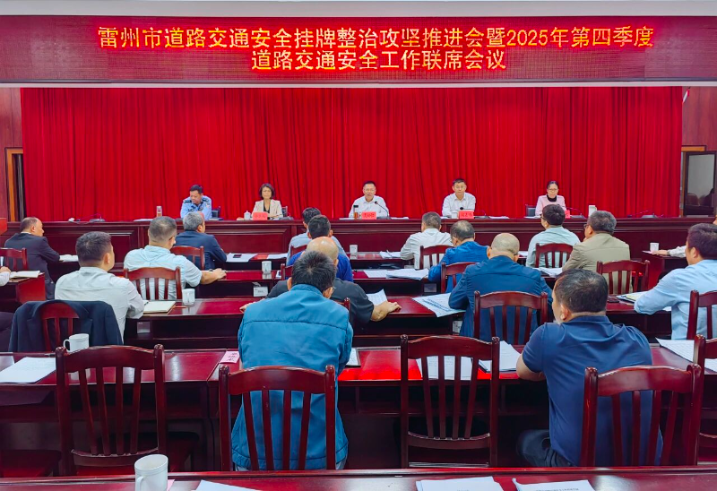 11月5日,雷州市召开道路交通安全挂牌整治攻坚推进会暨2025年第四季度道路交通安全工作联席会议,进一步加压推进全市道路交通安全挂牌整治攻坚工作,彻底扭转当前工作被动局面。强调要深刻汲取事故教训,以壮士断腕的决心、背水一战的勇气,全力以赴坚决打赢这场挂牌整治翻身仗。市委书记吴松江出席会议并作讲话,市委副书记、市长闫嘉伟主持会议。