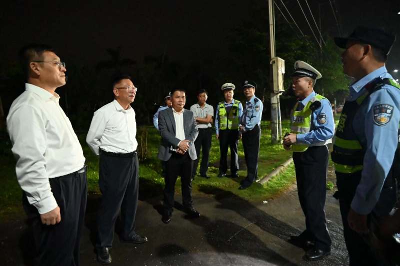 当晚10时许,吴松江一行先后前往西湖一横路原雷城糖厂门前十字路口、清端大道车管所门前路段、207国道奋勇高新区段等处,现场调研摩托车、电动自行车交通违法行为专项整治情况,重点检查不佩戴安全头盔、超员载人、不按规定车道行驶、闯红灯、非法改装、无牌无证等突出违法行为整治工作;同步调研客货车辆酒驾醉驾、超员超载等违法行为查处情况,全面排查道路通行条件短板、安全设施配置漏洞,并仔细核查安全隐患整改任务落实情况。