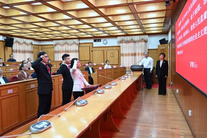 会议依法表决通过人事任免及辞职事项:表决通过雷州市人大常委会关于接受黄圣同志辞去湛江市十五届人大代表职务请求的决定,关于接受吴月艳等同志辞去雷州市十七届人大代表职务请求的决定。会议还表决通过人事任免事项,决定任命谢敏婕同志为雷州市人民政府副市长,决定免去陈伟斌同志的雷州市人民政府副市长职务;任命吴剑云同志为雷州市人民法院刑事审判庭副庭长,殷路军同志任雷州市人民法院唐家人民法庭副庭长。魏晓燕为新任命人员颁发任命书,会后举行了新任职人员向宪法宣誓仪式。