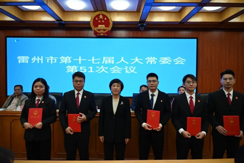 会议表决通过人事任免事项:任命黄土新为雷州市监察委员会副主任;任命劳家胜为雷州市人民法院龙门法庭副庭长,免去其雷州市人民法院立案庭(诉讼服务中心)副庭长职务;任命黄堪奕、叶耀鲜、陈瑰为雷州市人民法院审判员。