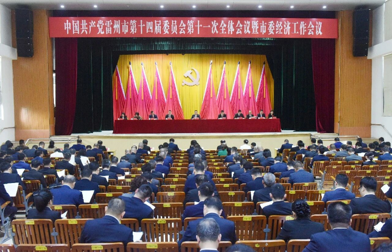 1月30日,中国共产党雷州市第十四届委员会第十一次全体会议暨市委经济工作会议在市人民会堂召开。会议坚持以习近平新时代中国特色社会主义思想为指导,深入贯彻党的二十大和二十届历次全会精神以及中央经济工作会议精神,全面贯彻习近平总书记对广东系列重要讲话和重要指示精神,认真落实省委十三届八次全会暨省委经济工作会议和湛江市委十二届十次全会暨市委经济工作会议精神,总结2025年工作,分析当前形势,部署2026年工作。市委常委会主持会议。市委书记吴松江代表市委常委会作工作报告,市委副书记、市长闫嘉伟就经济工作作具体部署。