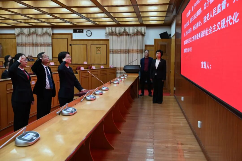 魏晓燕为新任命人员颁发任命书。会后举行了新任职人员向宪法宣誓仪式。