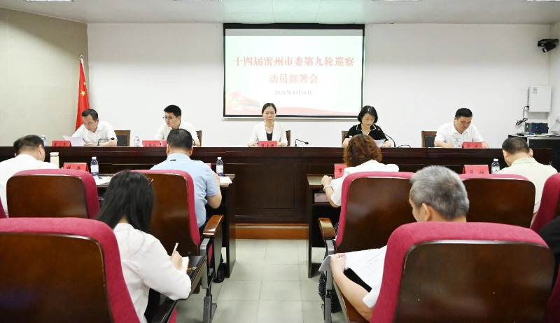 4月16日,十四届雷州市委第九轮巡察工作动员部署会召开。会议深入学习贯彻习近平总书记关于党的自我革命的重要思想、关于巡视工作的重要论述,贯彻落实上级巡视巡察工作会议精神,总结2025年巡察工作情况,部署2026年工作任务,对十四届市委第九轮巡察工作进行动员。