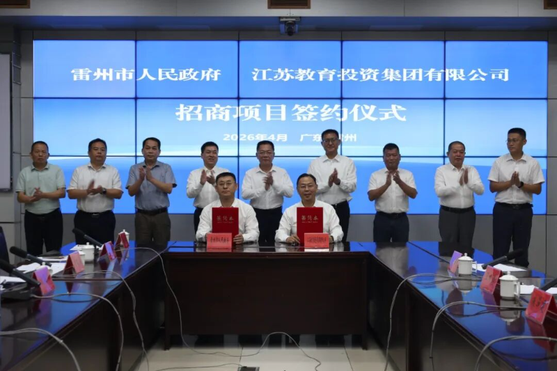 活动最后,在双方领导共同见证下,闫嘉伟与朱泽建分别代表雷州市人民政府和江苏教育投资集团有限公司签署合作协议。