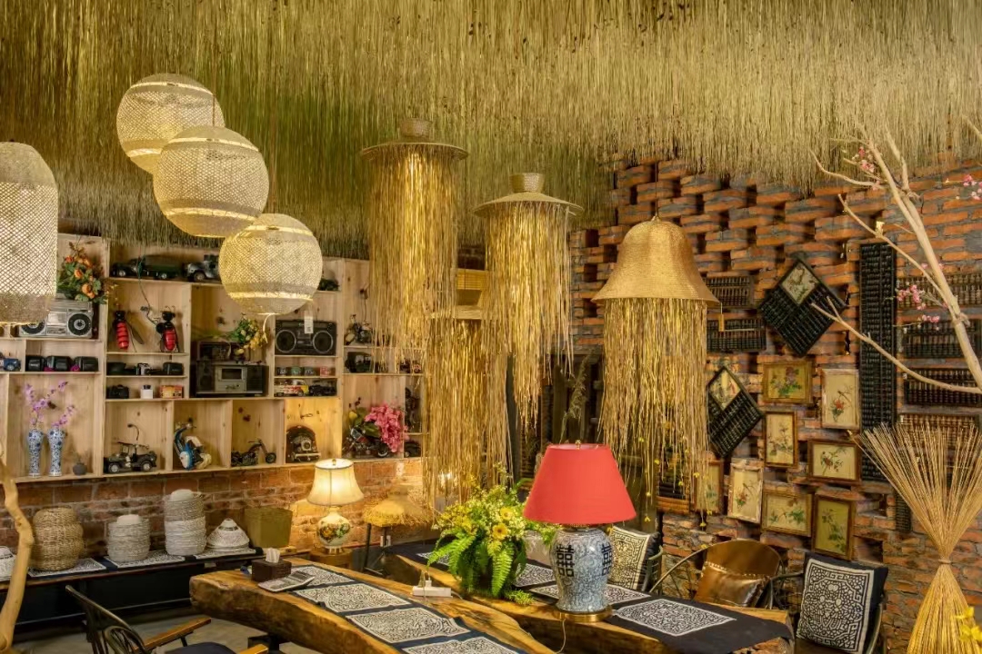一是招商引资助力 产业发展。 去年该镇成功与广东华蒲灯饰有限公司签订合作协议,联合打造蒲草文化产业基地。 目前,该基地已投入使用,实 行 “企业+农户”模式运作,集蒲织品设计、生产、加工、销售 于一体,开发出一系列以天然植物纤维为主要材料的灯饰工艺 品,并通过“互联网+”销往欧美和日本市场,年产值 2000 多万 元。基地提供直接就业岗位 60 个,辐射解决周边约 1000 余名群 众及残疾人就业问题。带动揖花村、平余村、南边村、大周村等 蒲织主要产业村落联动发展,形成规模化 “生产—加工—销售” 体系,目前该镇蒲草种植面积达 700 亩,从事蒲草编织的人数达 1.5 万人, 占全镇总人口的 40%。
