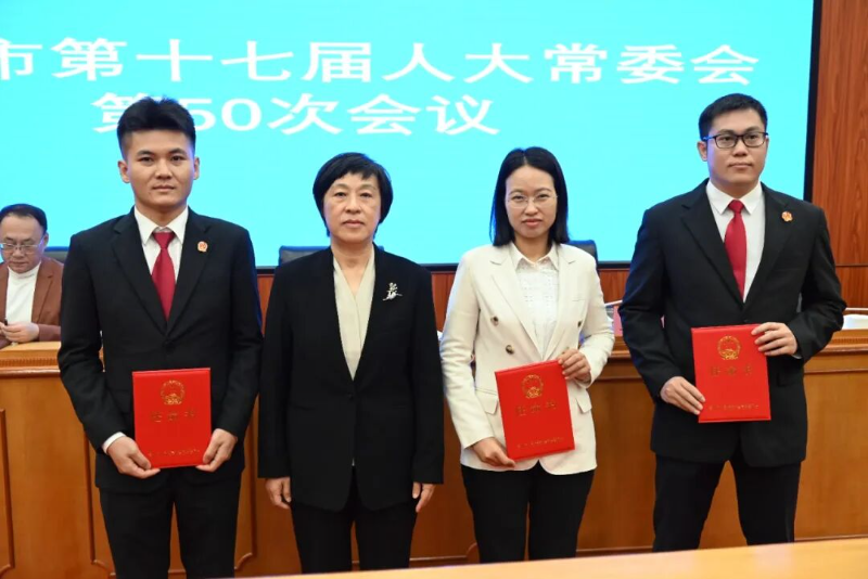 会议依法表决通过人事任免及辞职事项:表决通过雷州市人大常委会关于接受黄圣同志辞去湛江市十五届人大代表职务请求的决定,关于接受吴月艳等同志辞去雷州市十七届人大代表职务请求的决定。会议还表决通过人事任免事项,决定任命谢敏婕同志为雷州市人民政府副市长,决定免去陈伟斌同志的雷州市人民政府副市长职务;任命吴剑云同志为雷州市人民法院刑事审判庭副庭长,殷路军同志任雷州市人民法院唐家人民法庭副庭长。魏晓燕为新任命人员颁发任命书,会后举行了新任职人员向宪法宣誓仪式。
