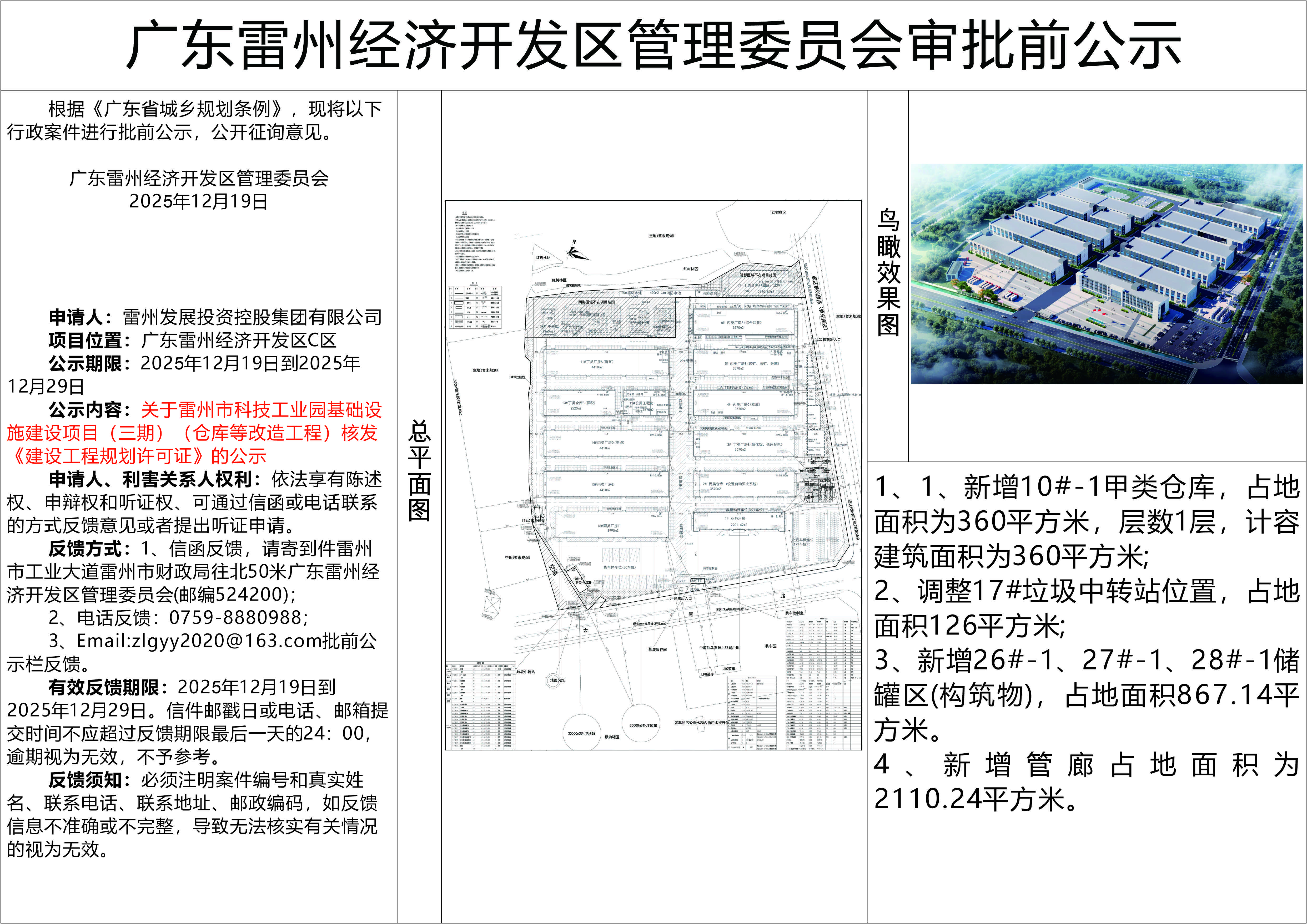 关于雷州市科技工业园基础设施建设项目(三期)(仓库等改造工程)核发《建设工程规划许可证》的公示