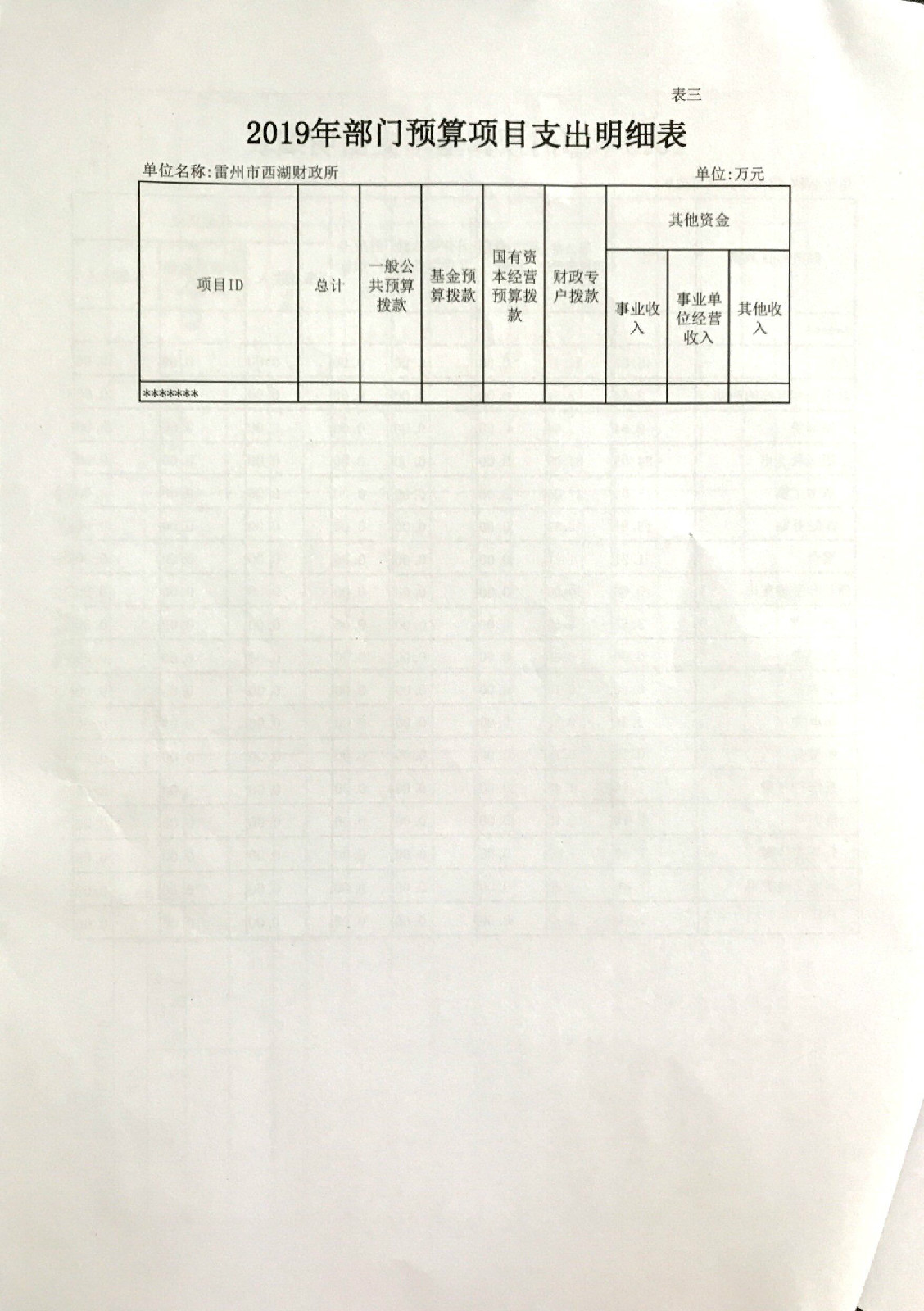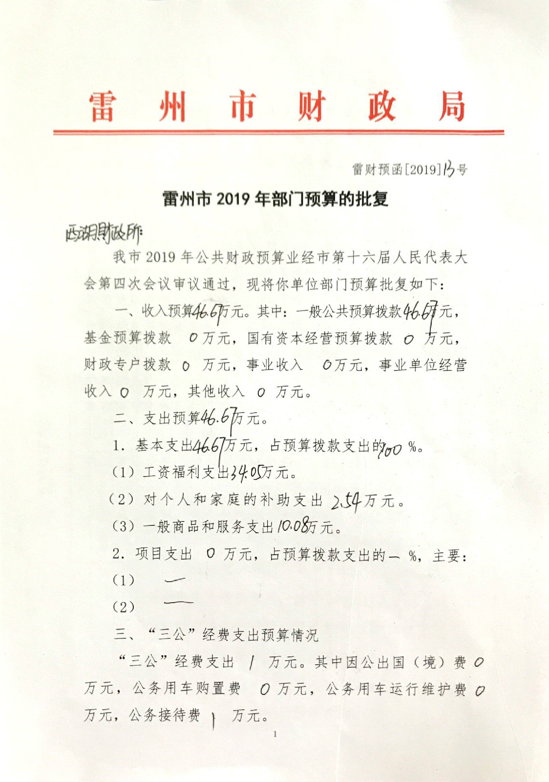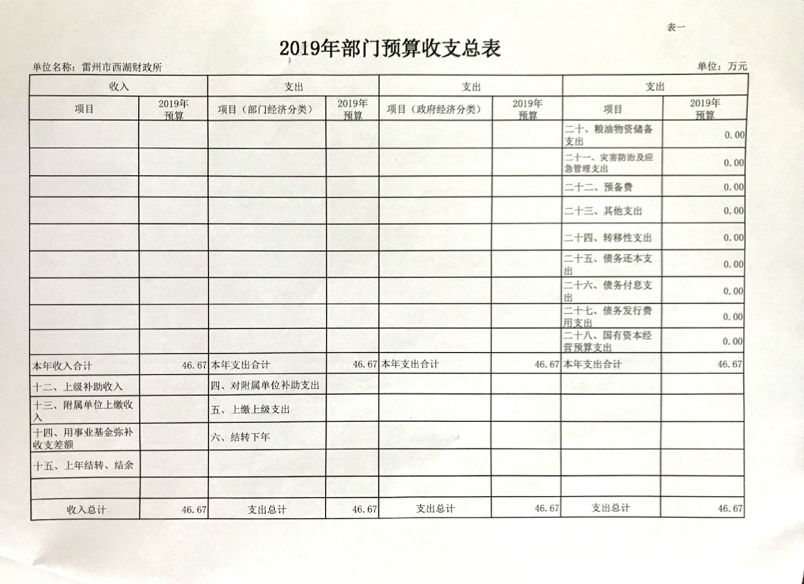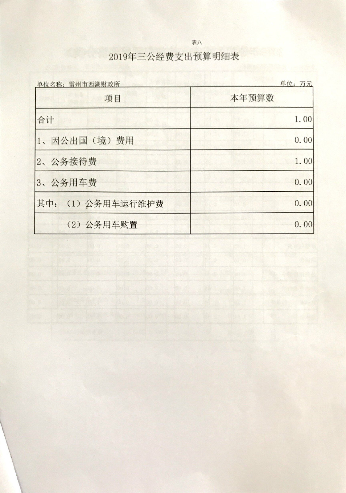 2019年西湖财政所预算公开