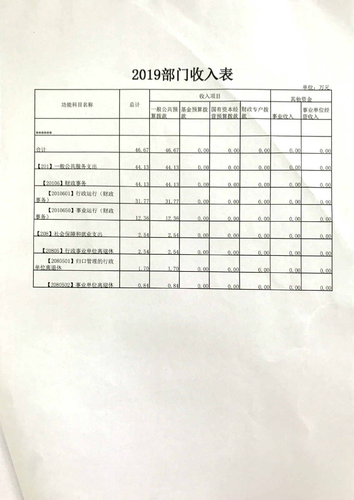 2019年部门预算