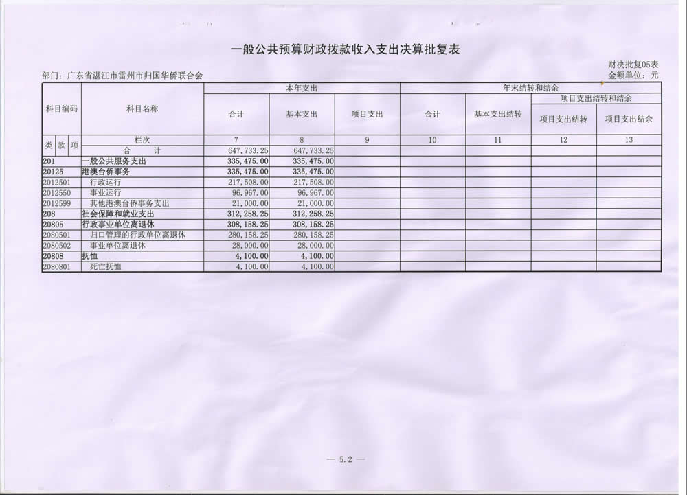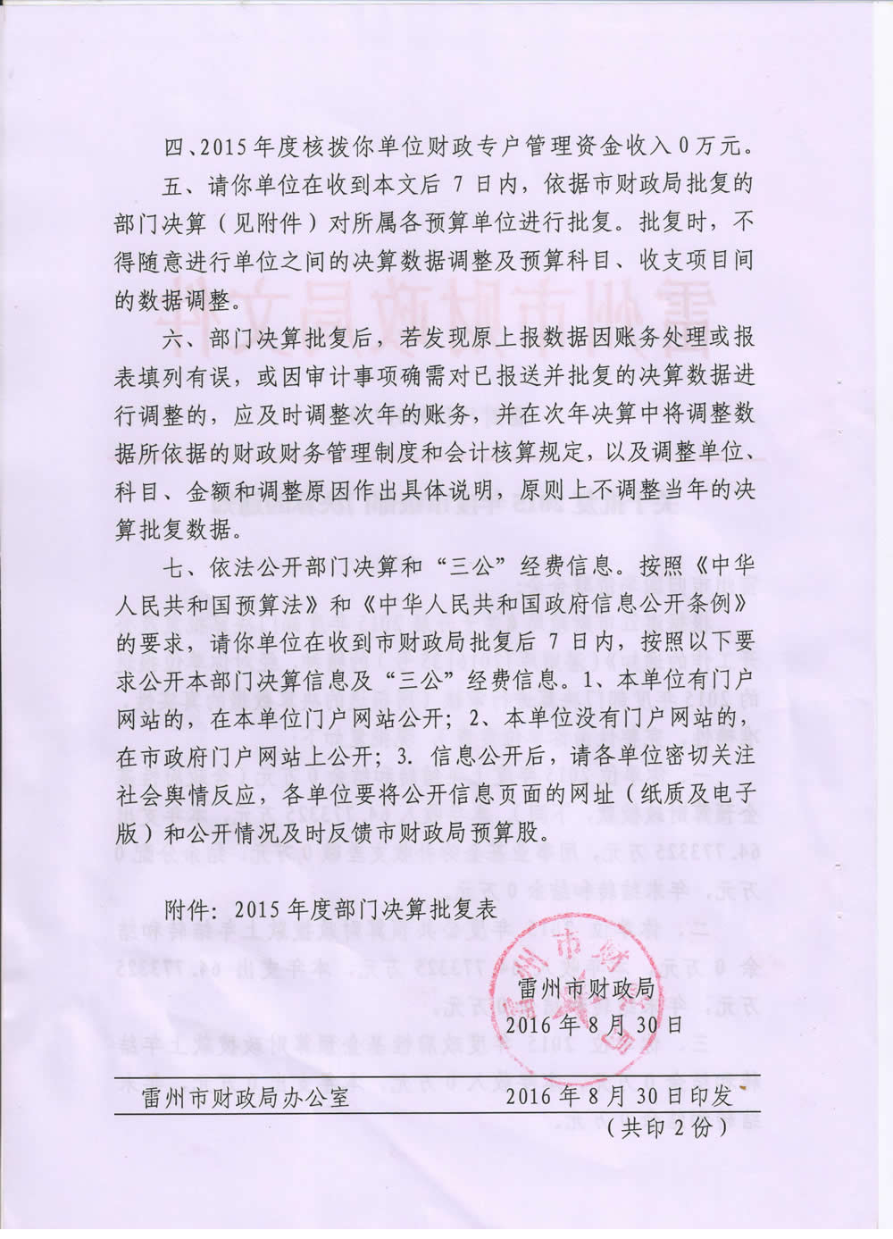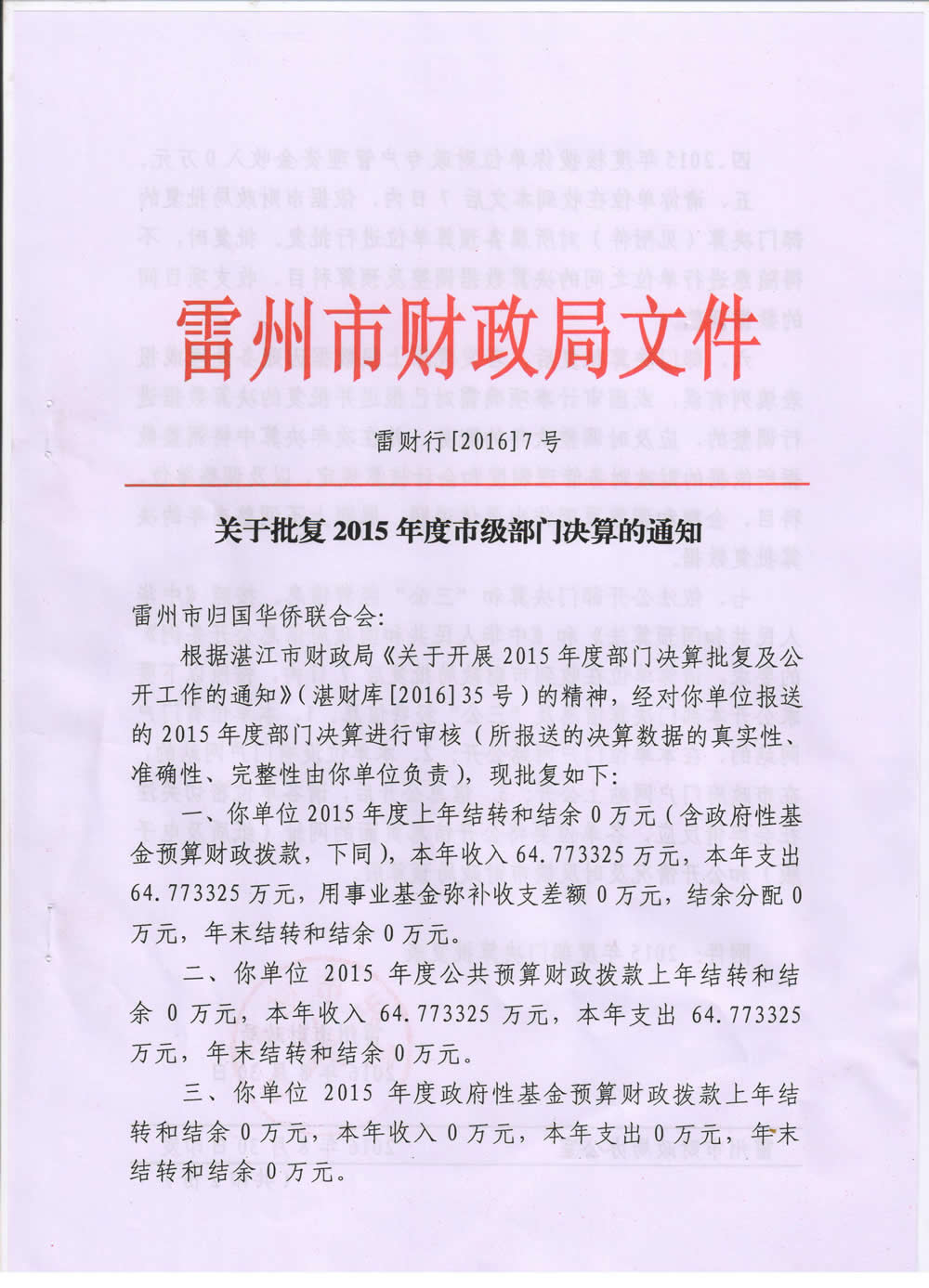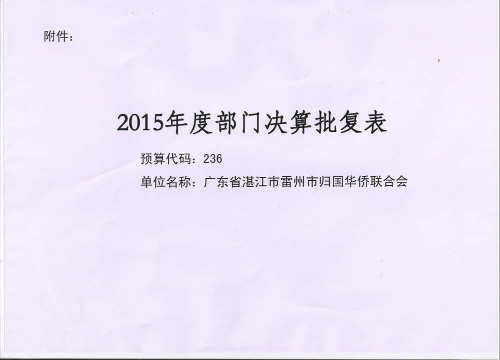 2015年雷州归国华侨联合会部门决算批复公开说明