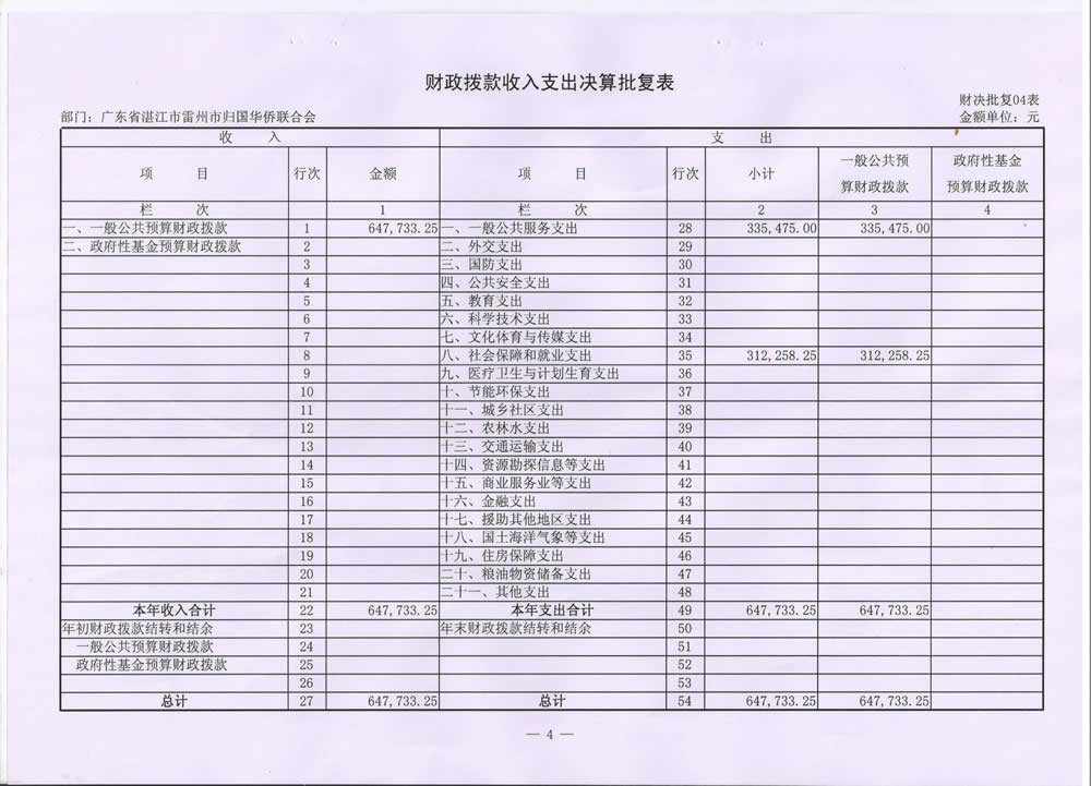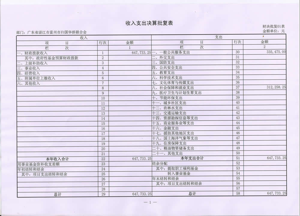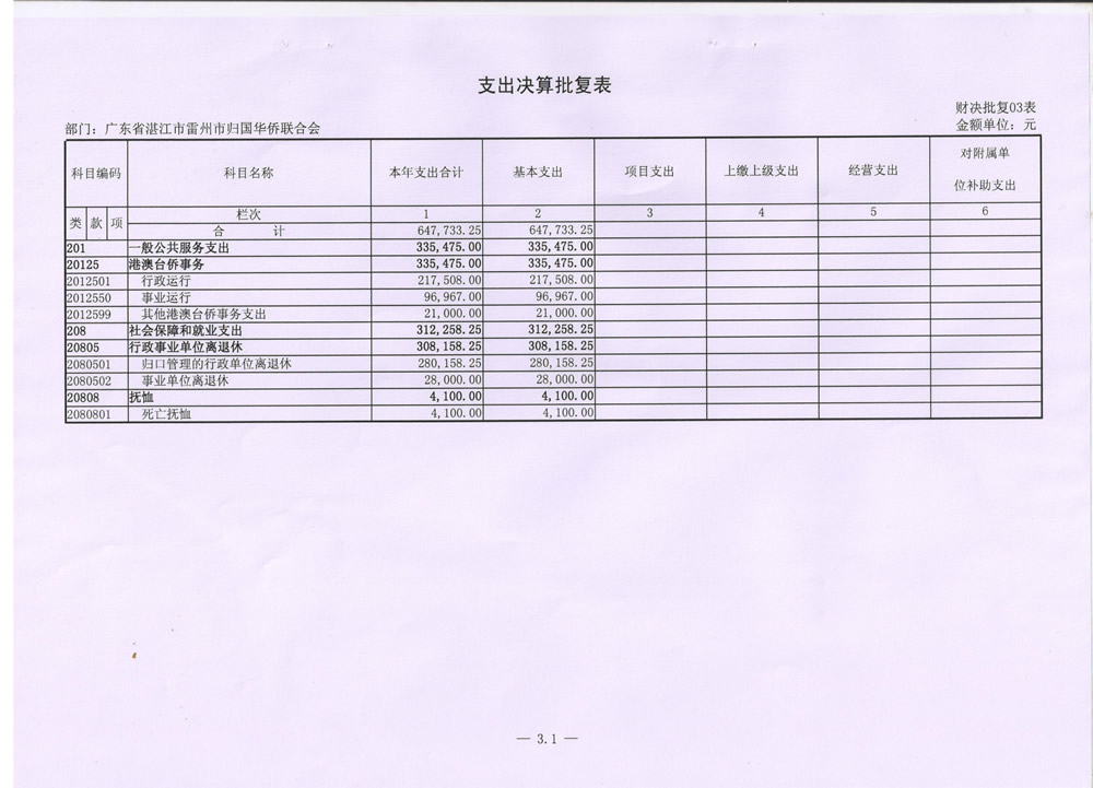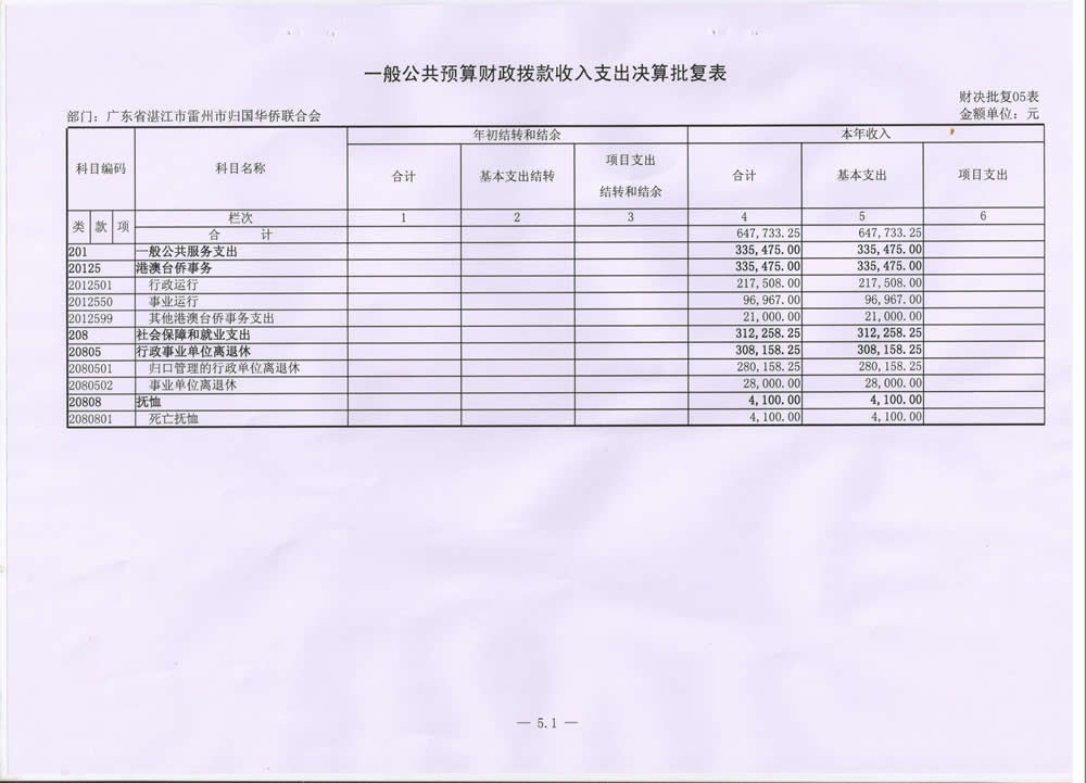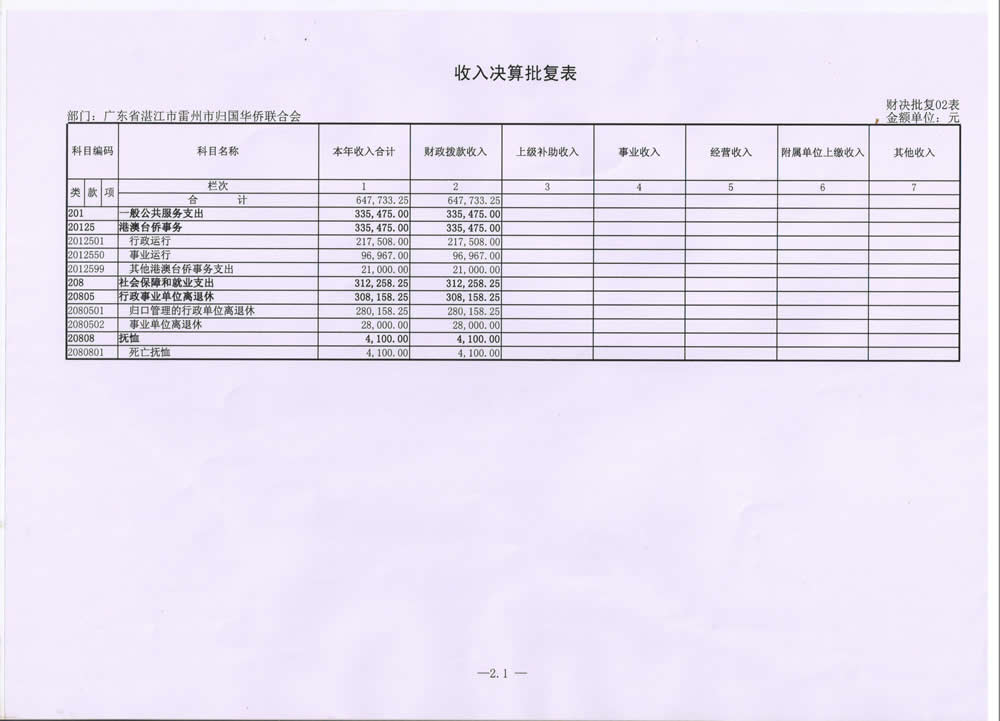 2015年雷州归国华侨联合会部门决算批复公开说明
