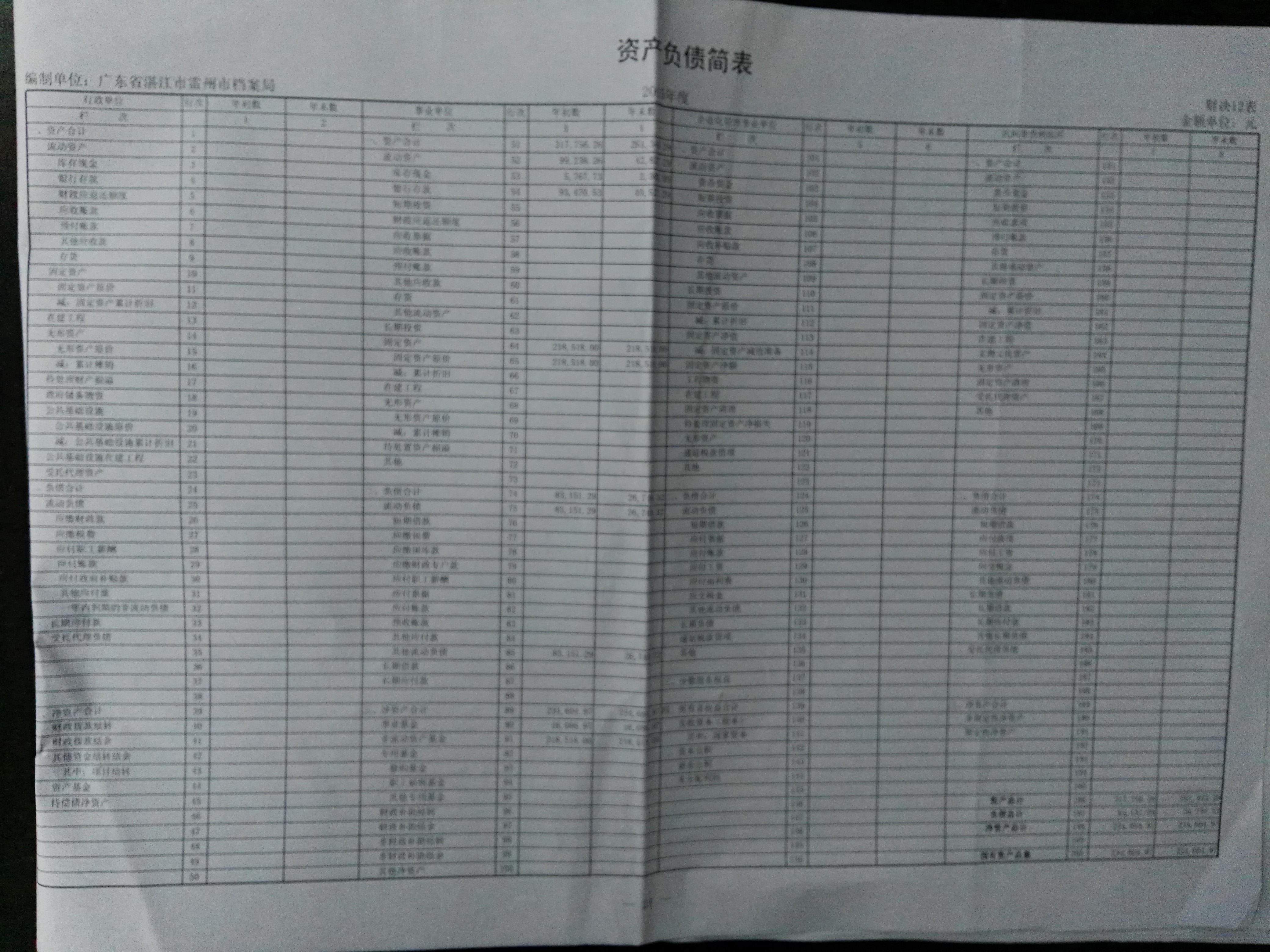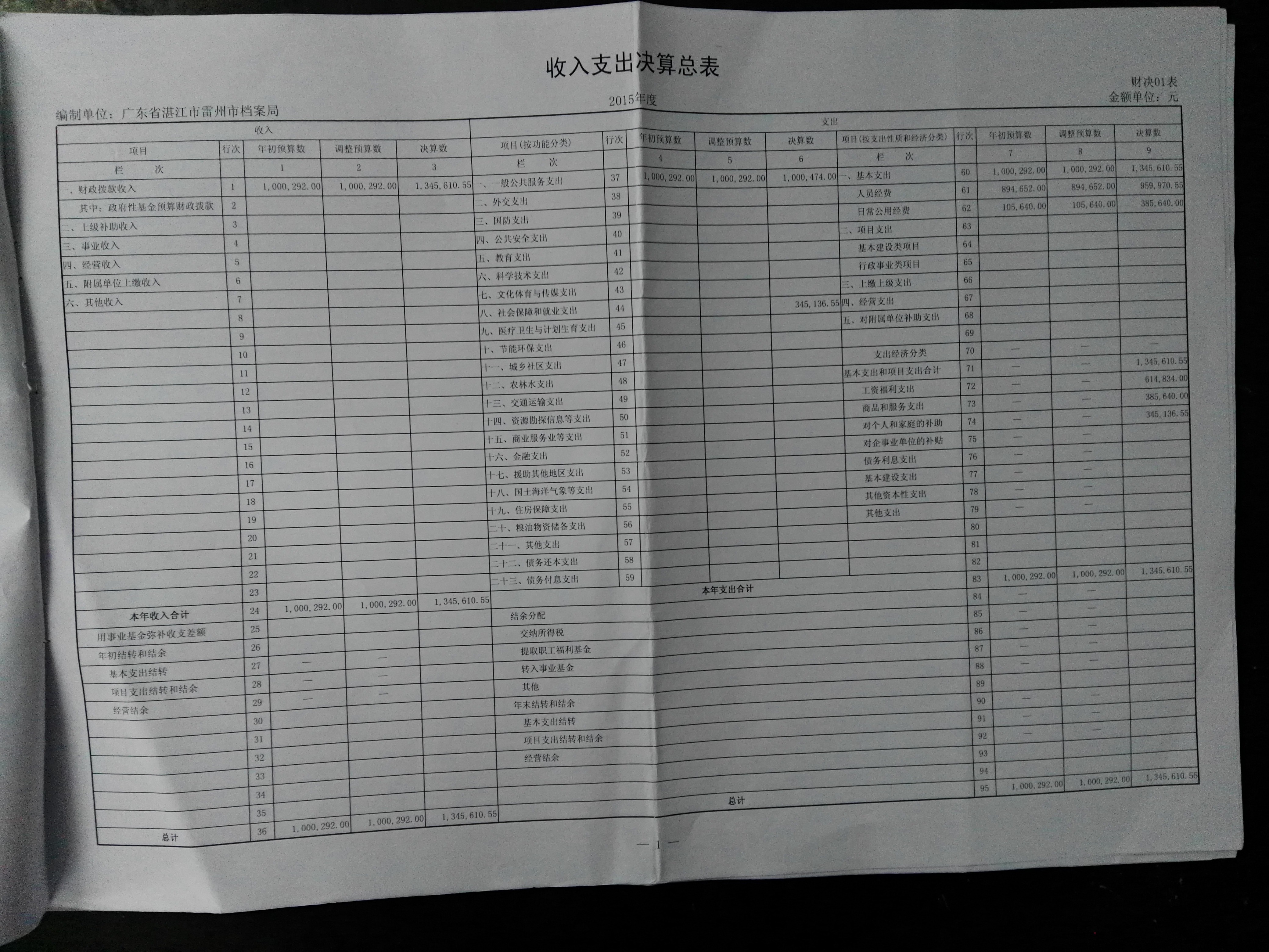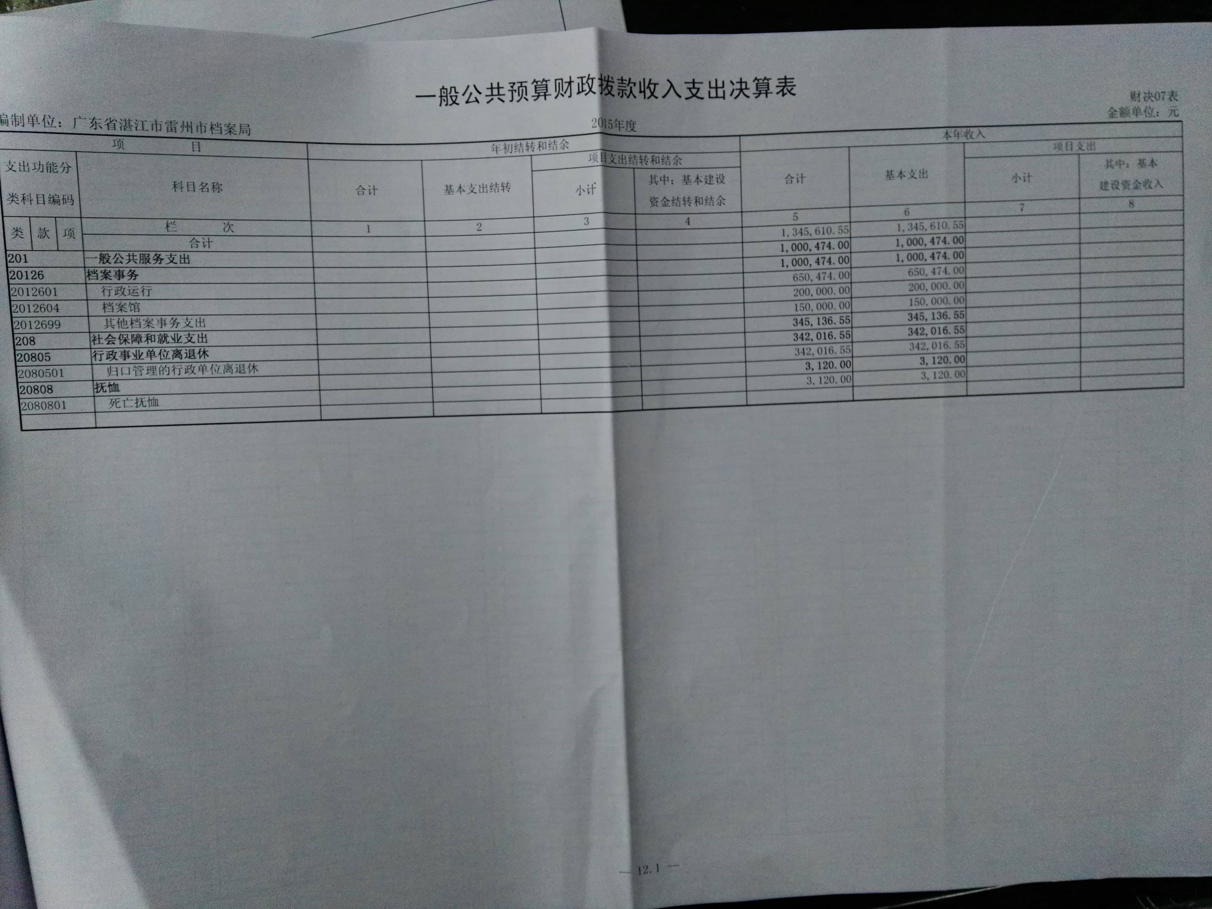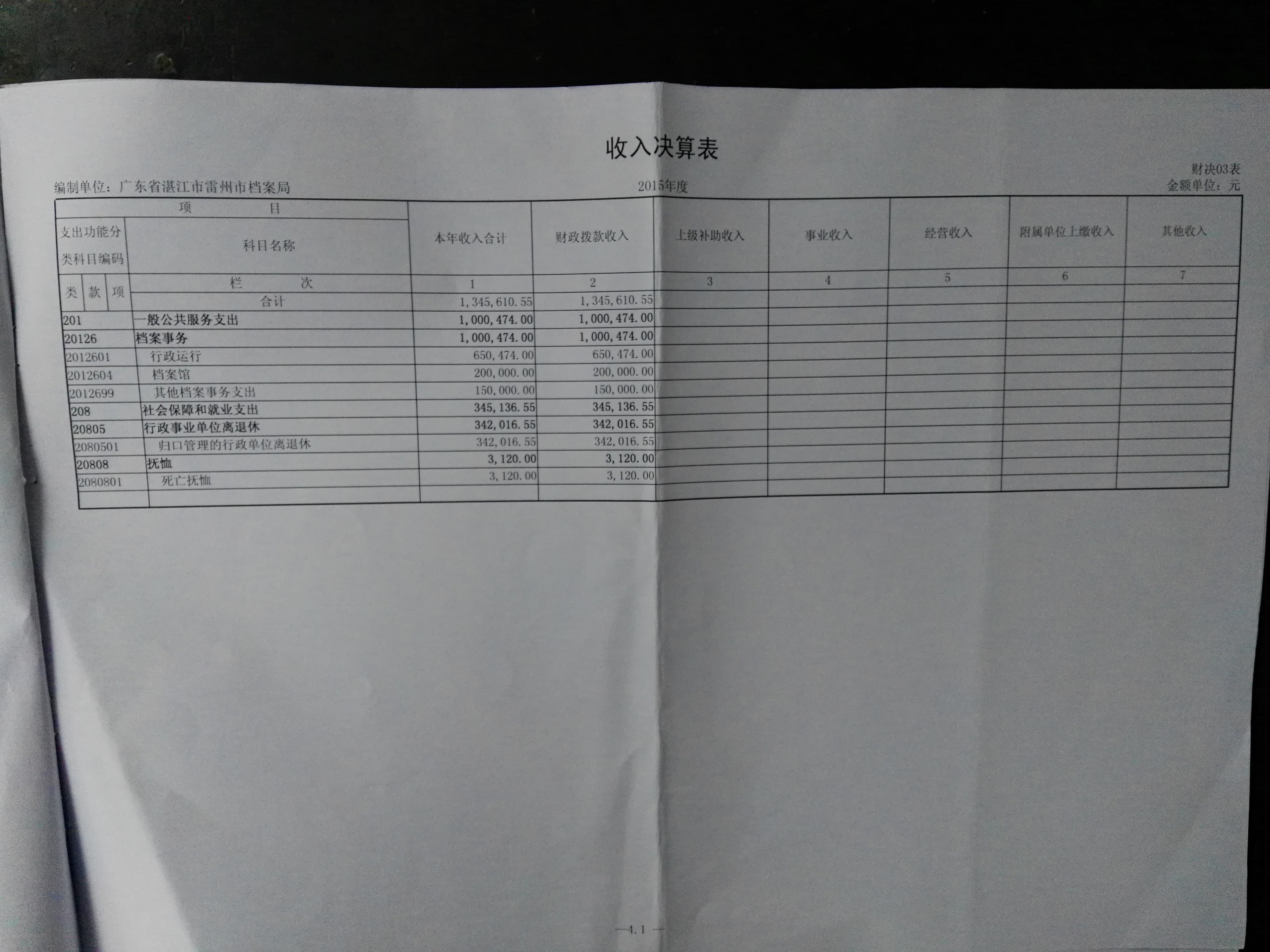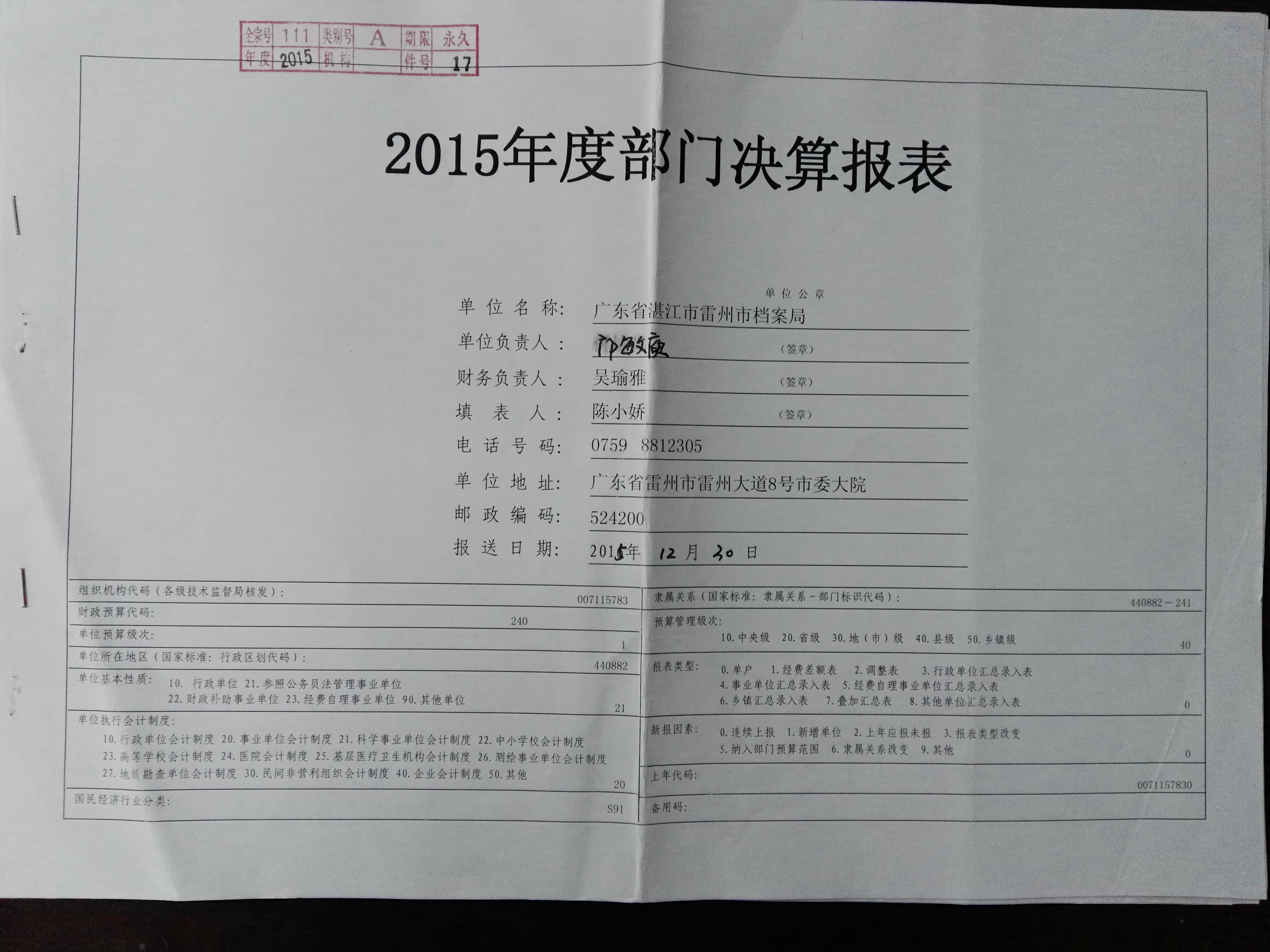 雷州市档案局2015年财政决算公开