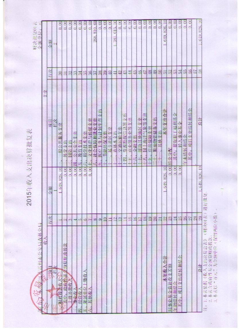 一、你单位2015年度上年结转和结余 0元(含政府性基金预算财政拨款,下同),本年收入1,649,826.10元,本年支出1,649,826.10元,用事业基金弥补收支差额0元,结余分配0元,年末结转和结余0元。