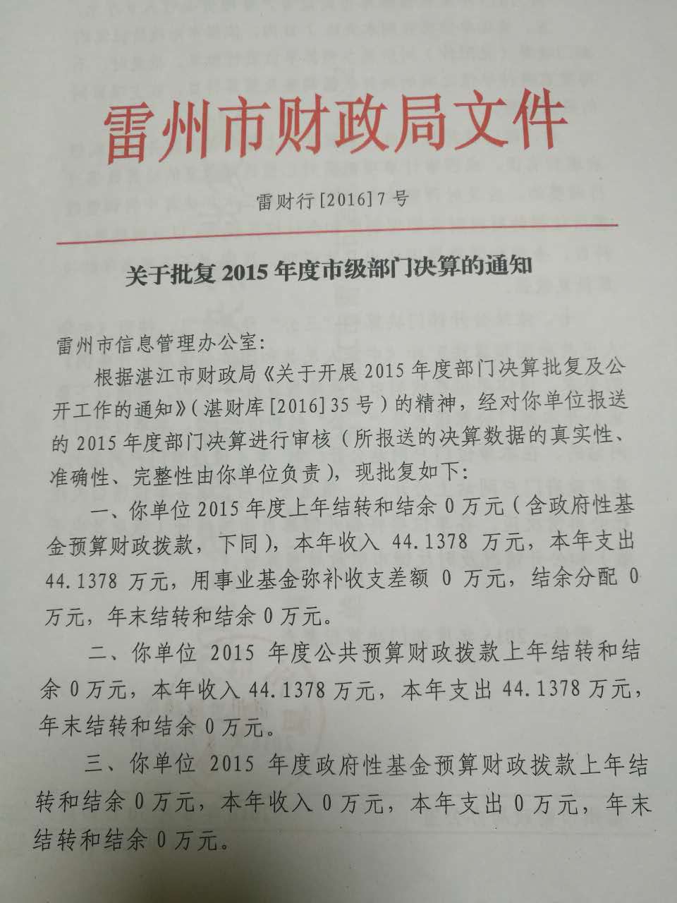 | 部门:广东省湛江市雷州市信息管理办公室 | 金额单位:万元 | |||||||||||||||