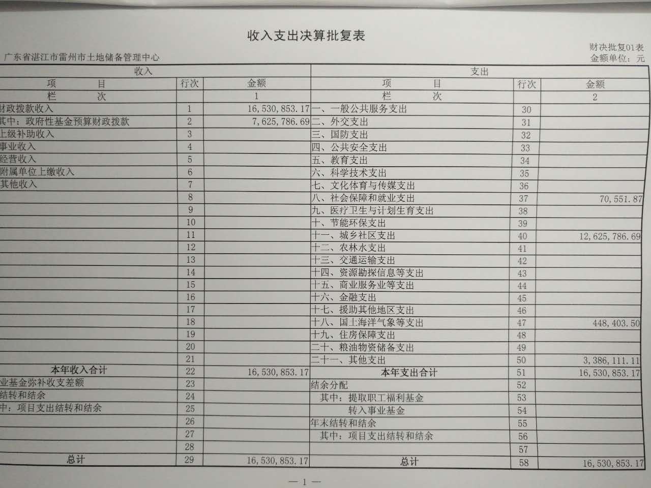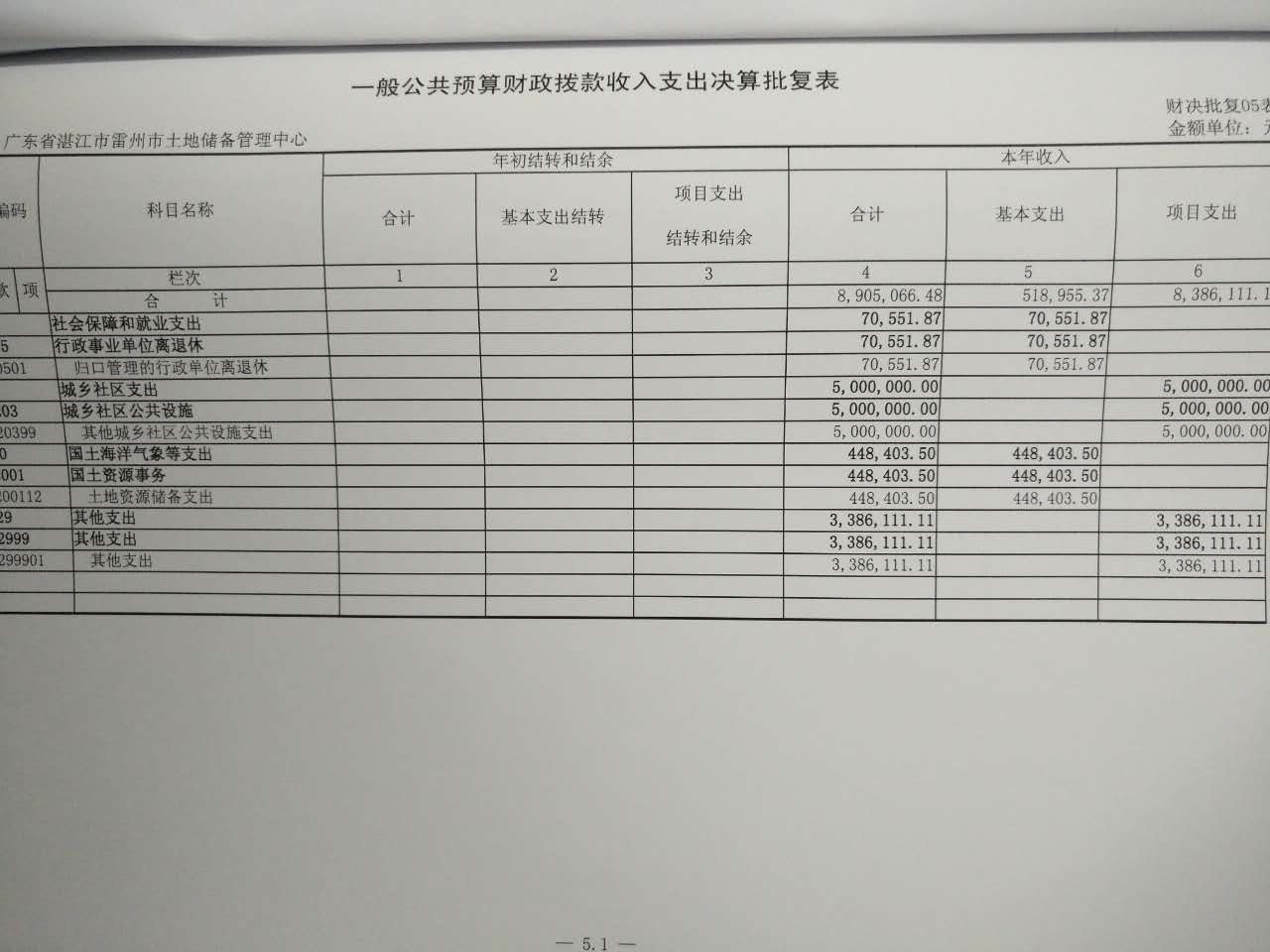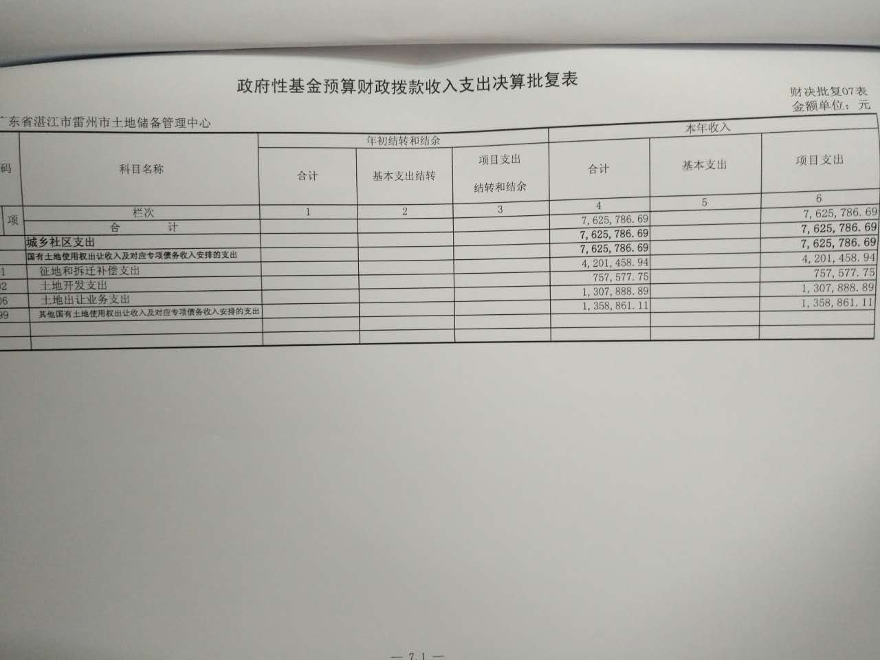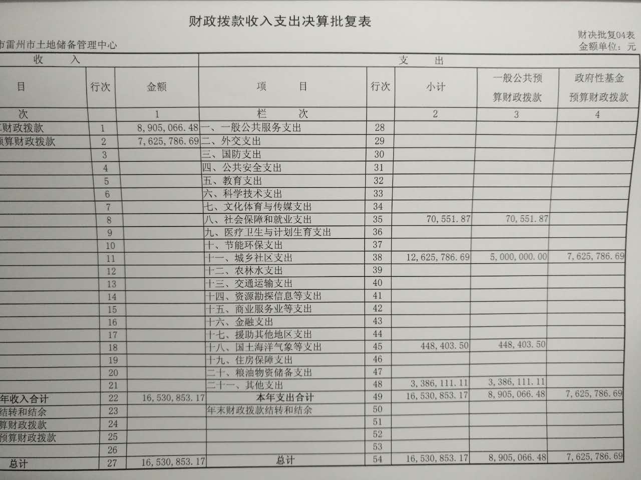 2015年雷州市土地储备管理中心决算批复公开