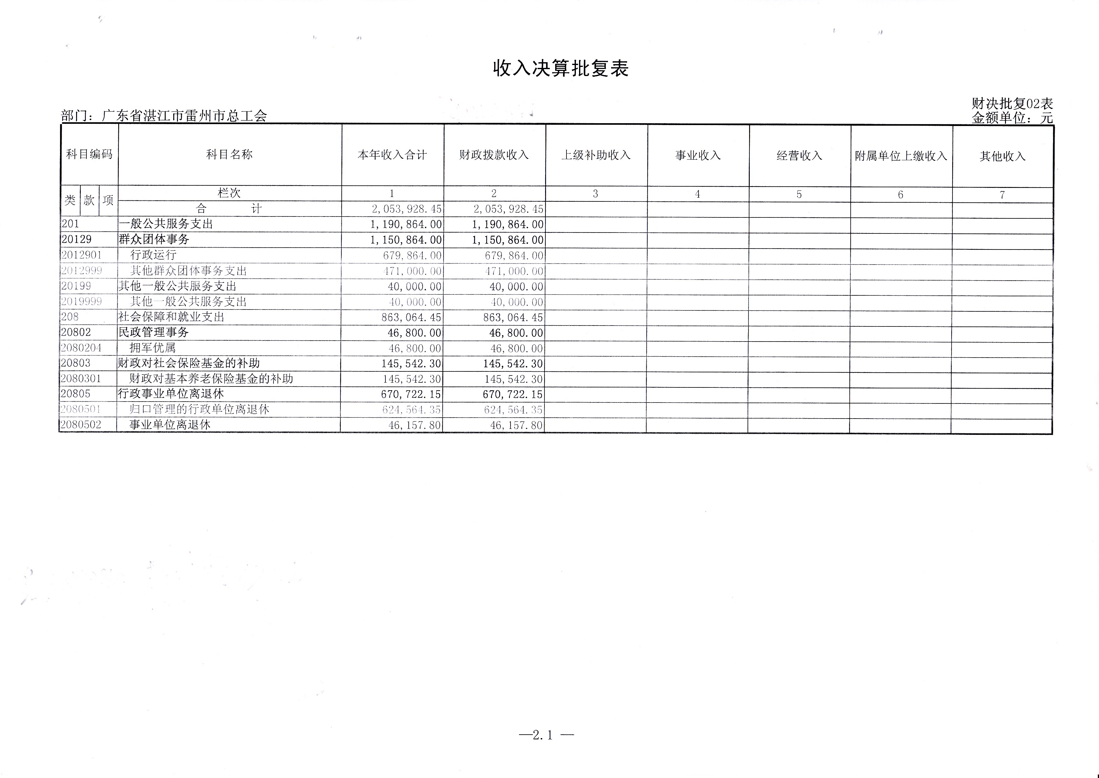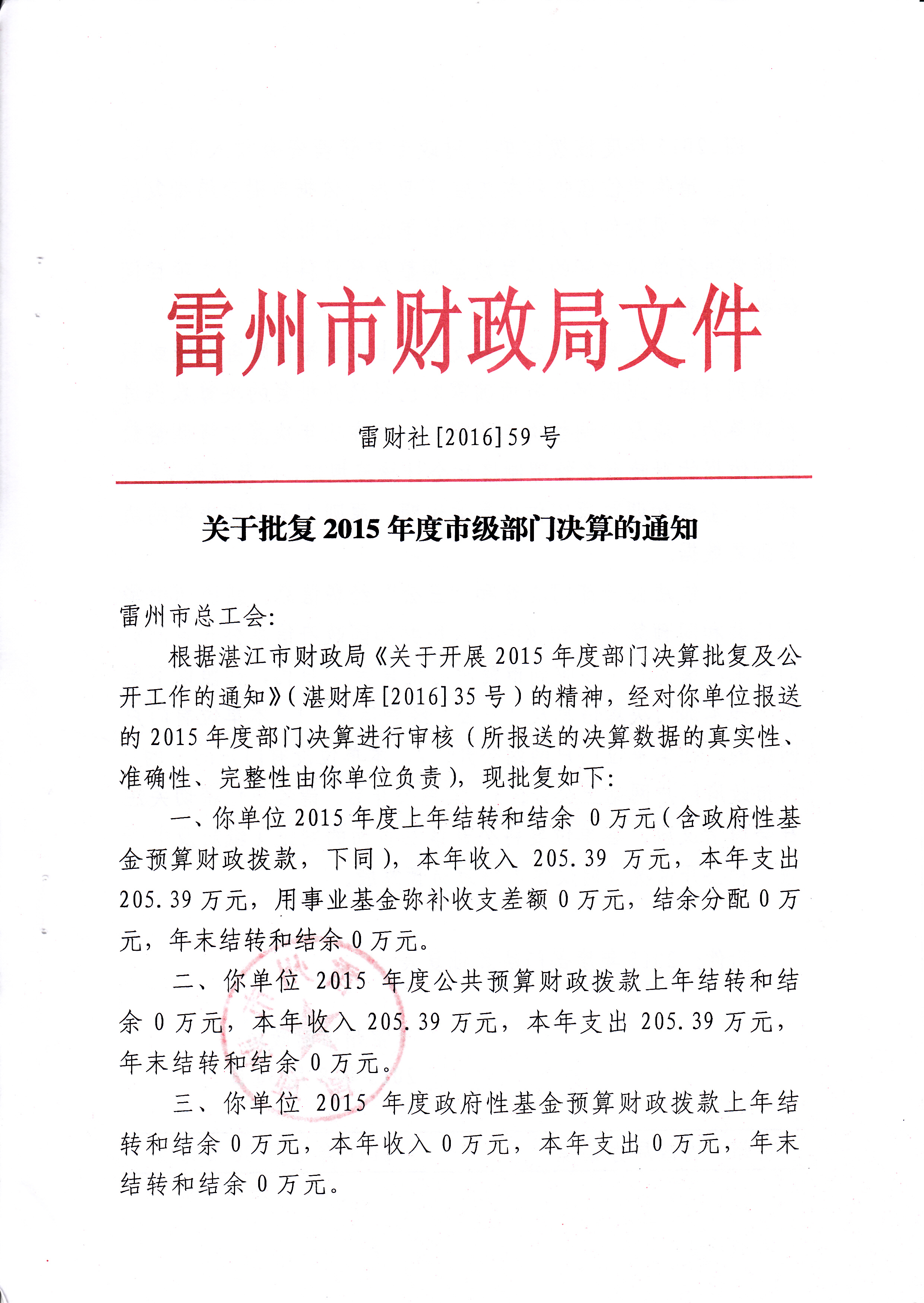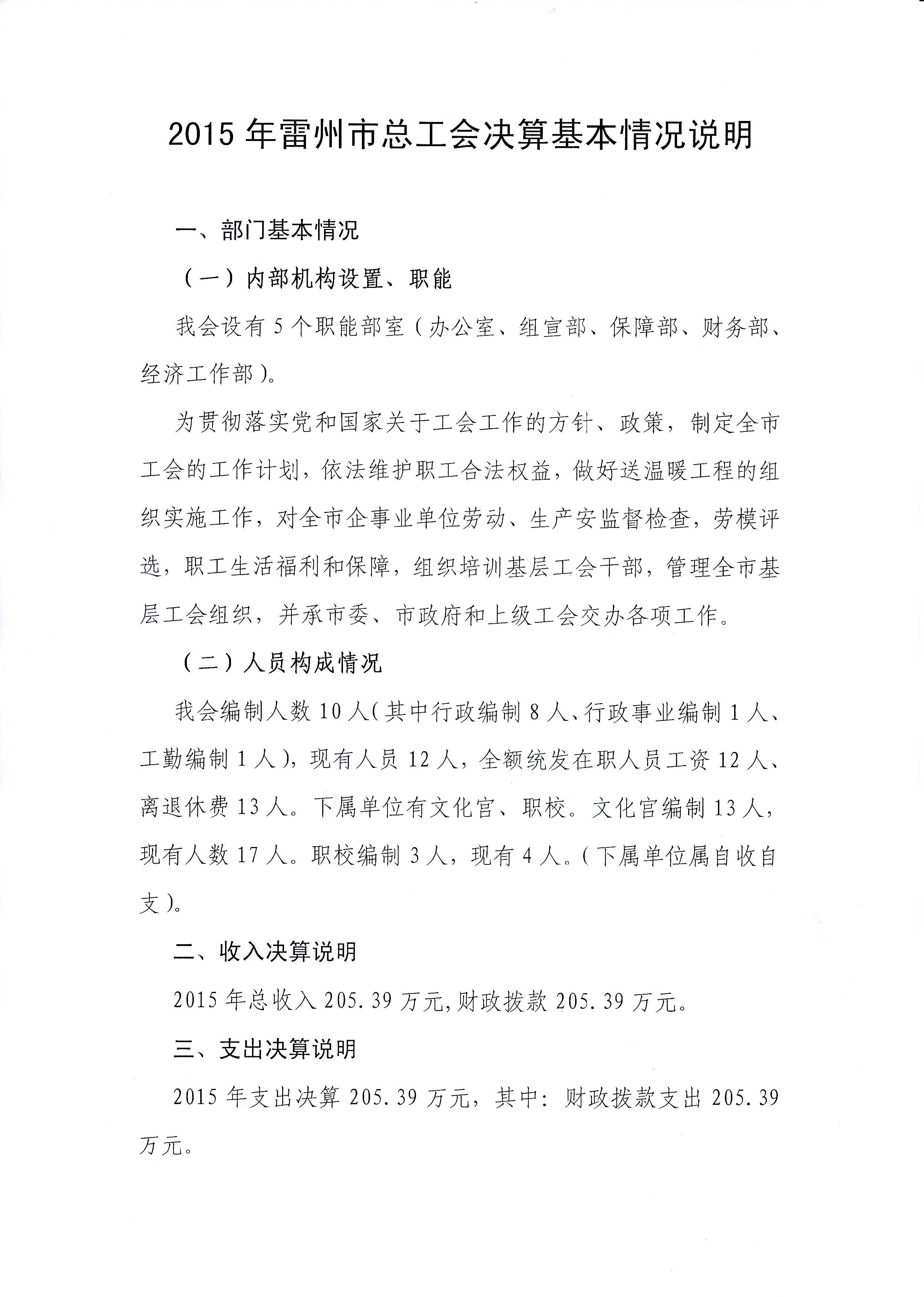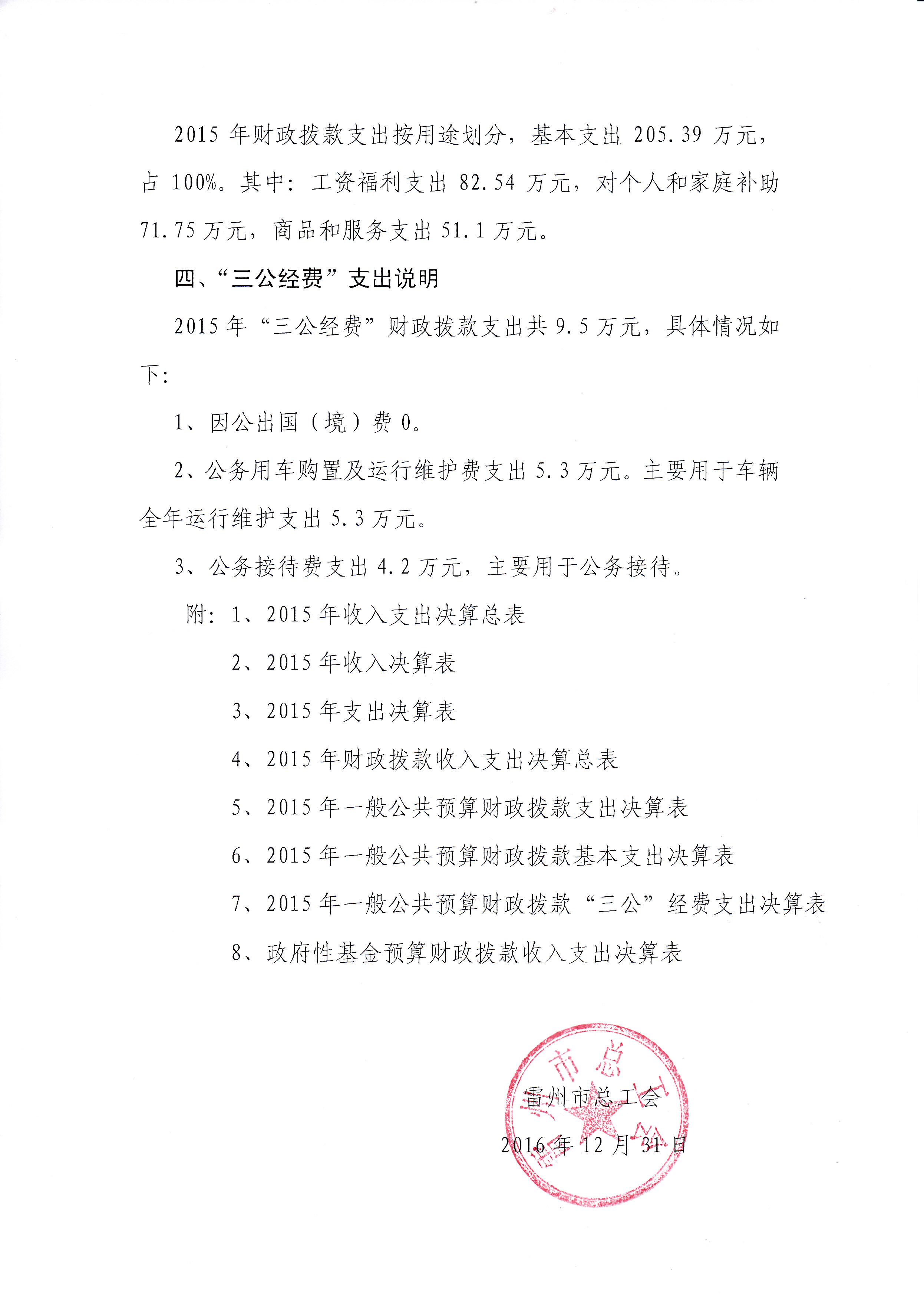 2015年雷州市总工会决算批复公开