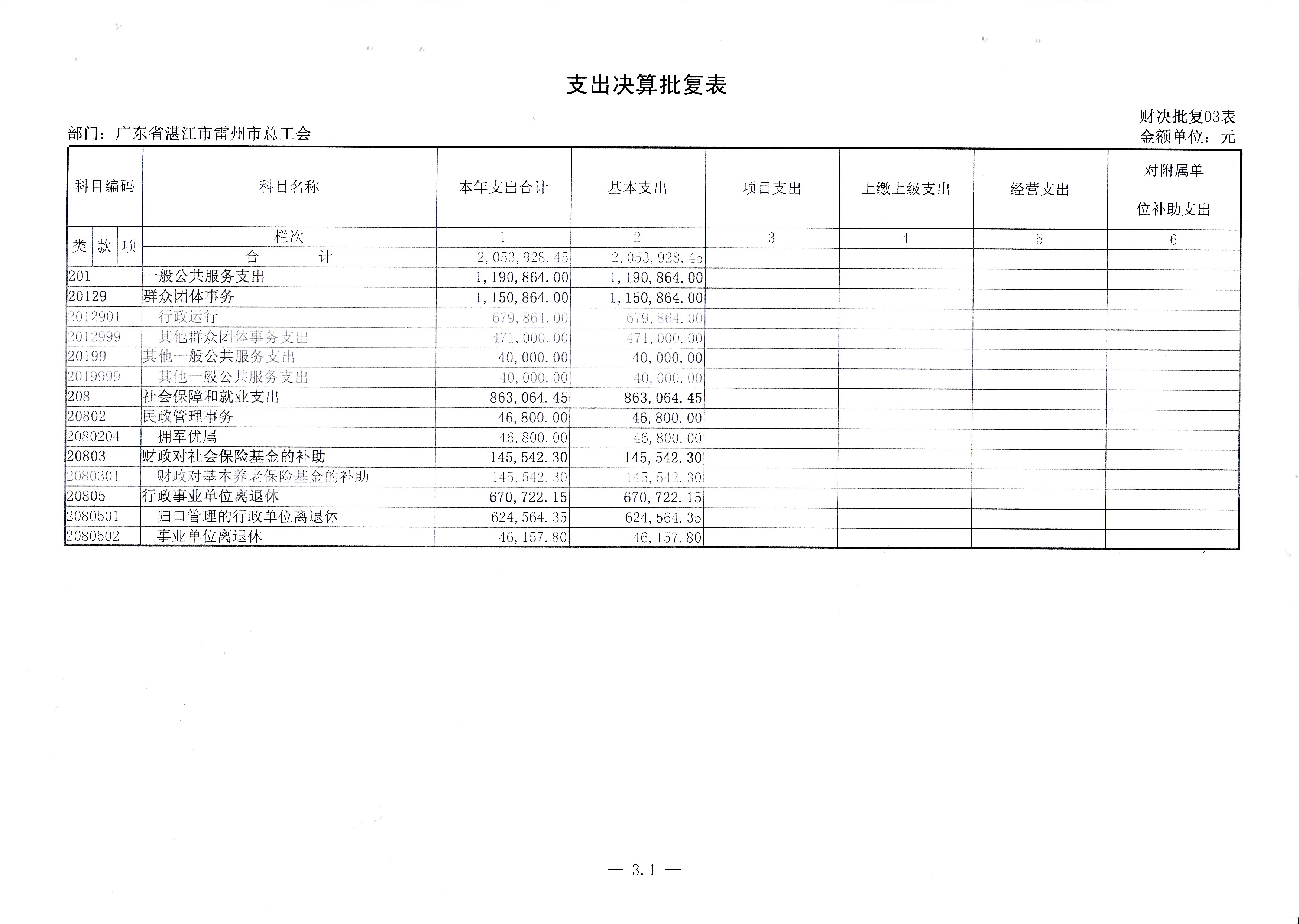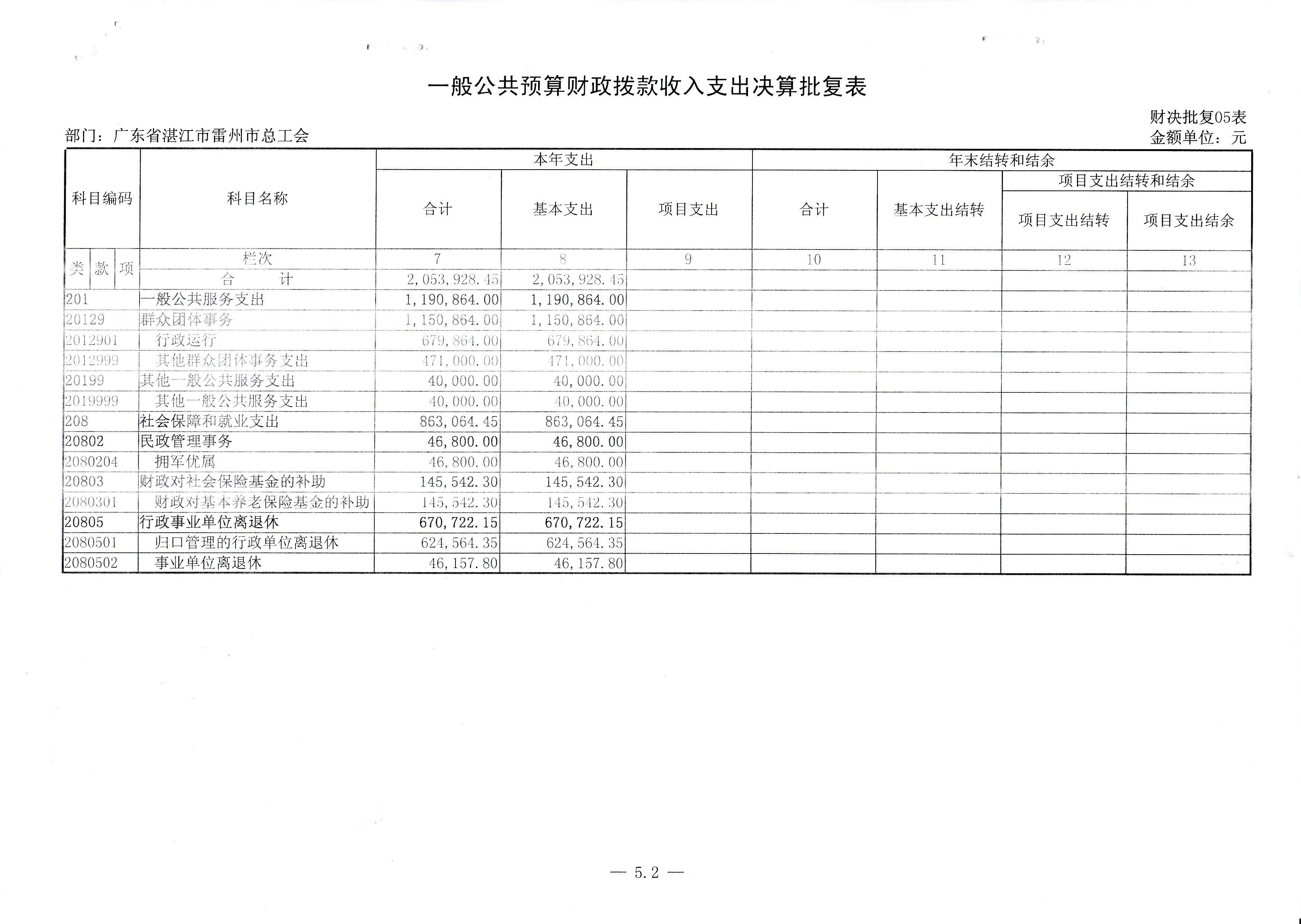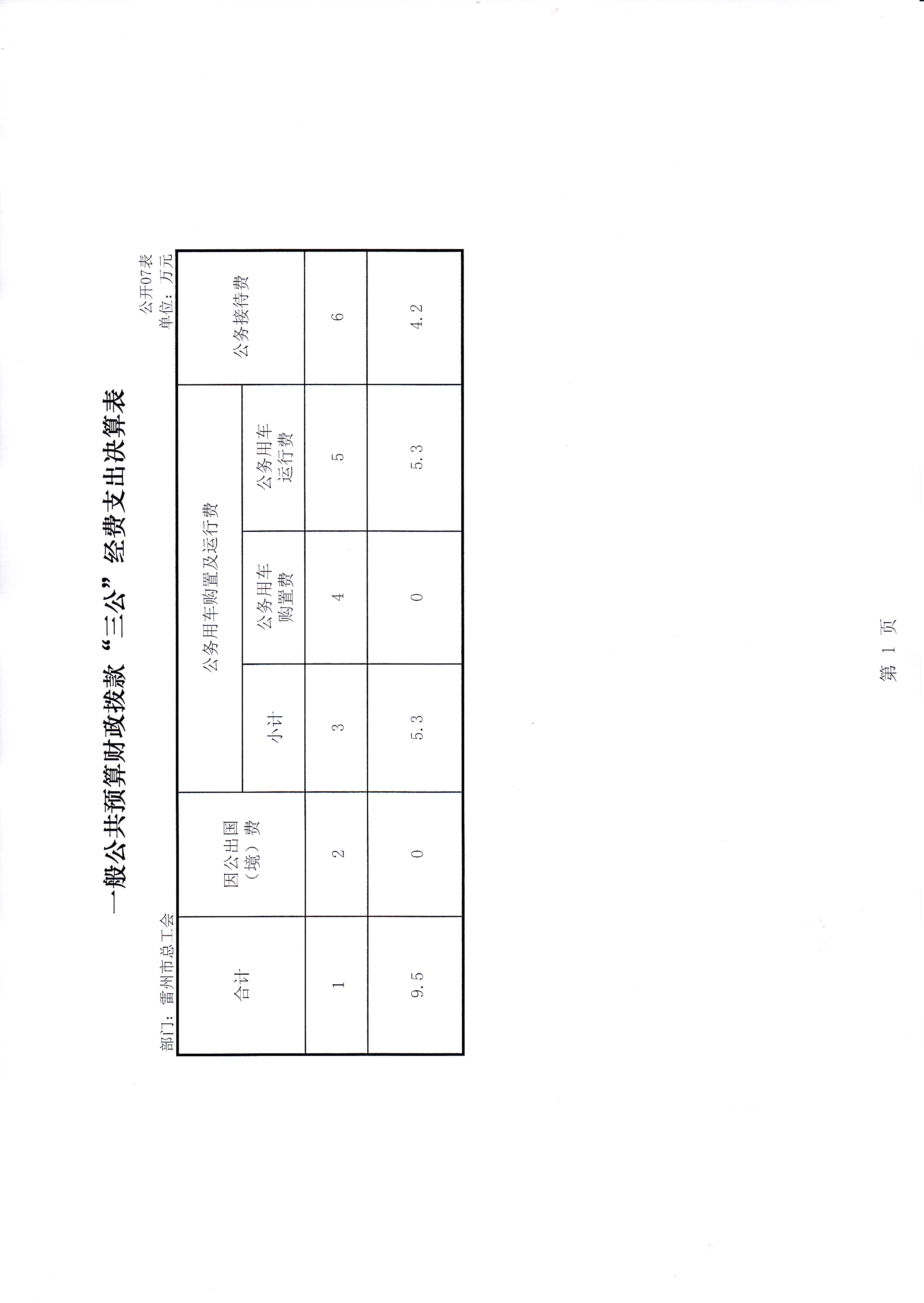2015年雷州市总工会决算批复公开